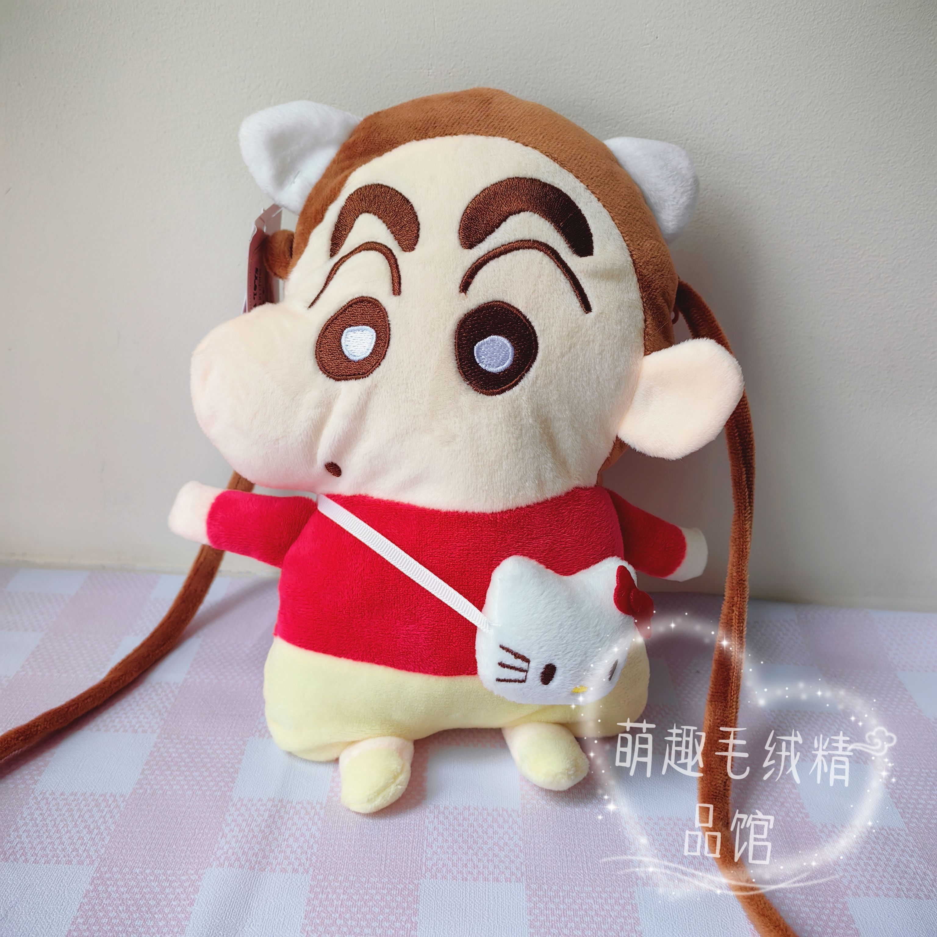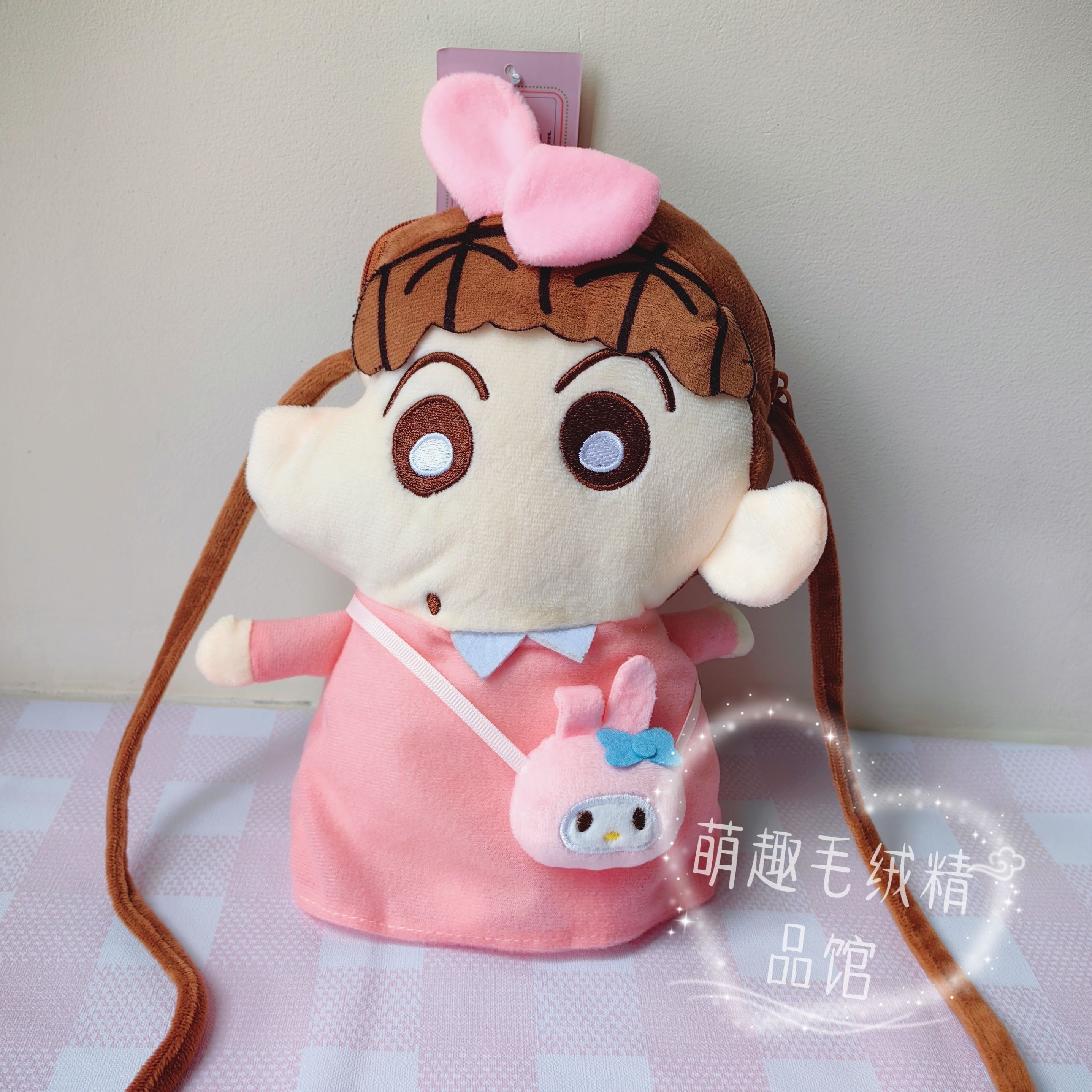 蜡笔小新毛绒斜挎包妮妮收纳零钱小包可爱卡通动漫周边玩偶单肩包
