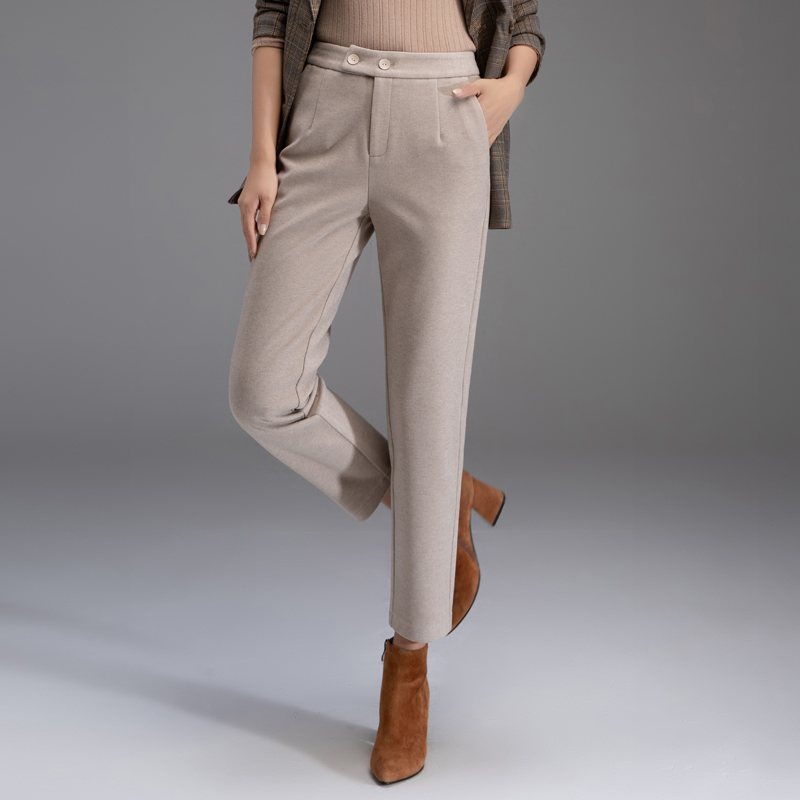 毛呢西装裤女秋冬2025新款冬季休闲高腰加厚妈妈呢子裤九分哈伦裤