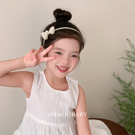 米白色韩系气质珍珠蝴蝶结发箍儿童高级感不勒头发卡头饰女童发饰