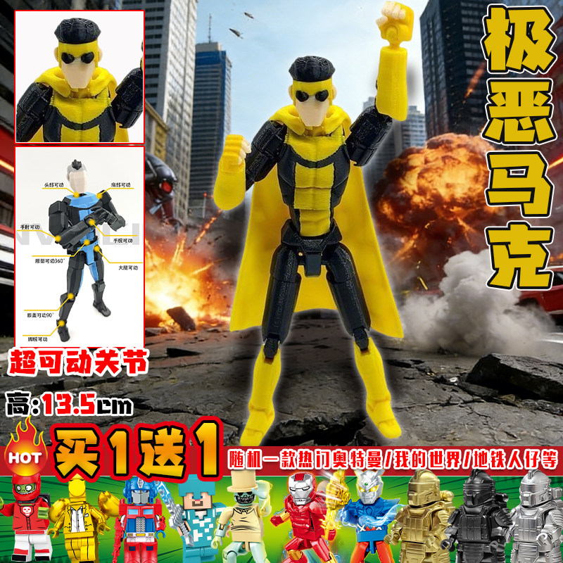 无敌少侠马克3D打印模型动漫英雄超可动人偶变体拼装玩具周边摆件