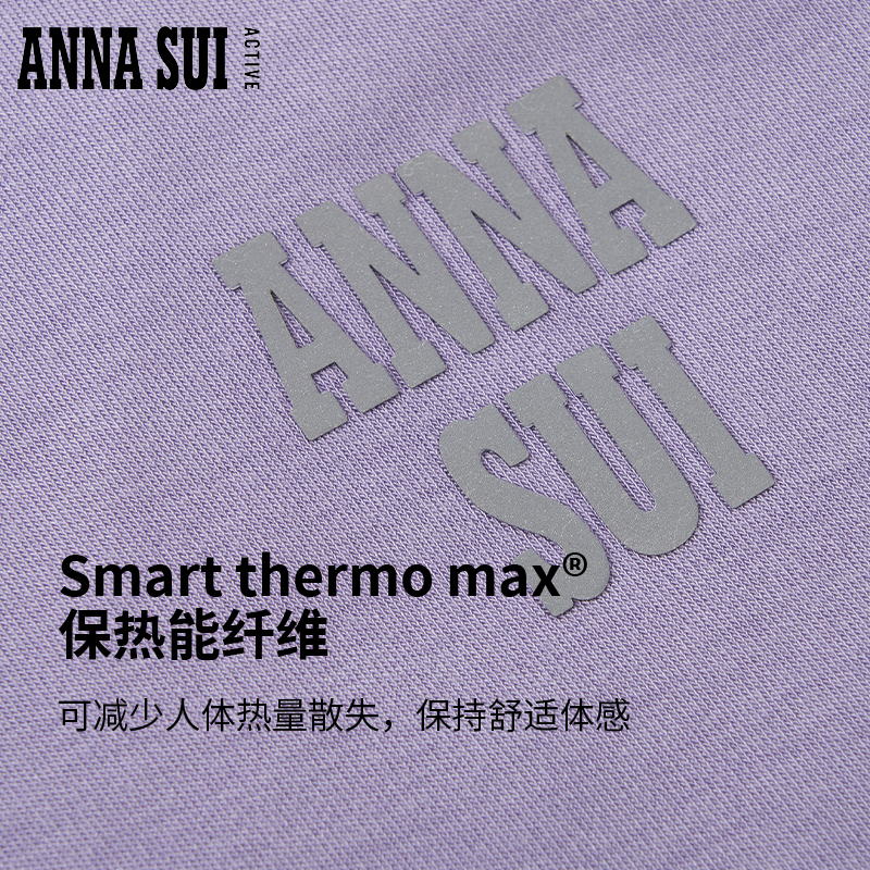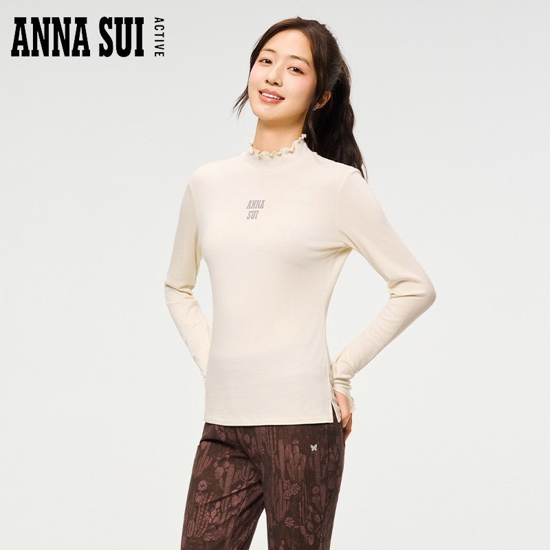 ANNA SUI安娜苏运动 起司绒半高花边领修身针织长袖T恤亲肤贴身女