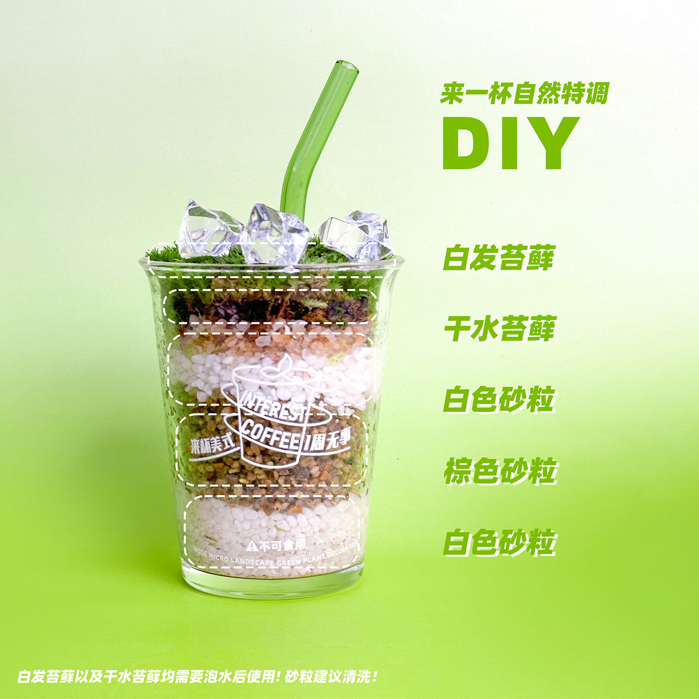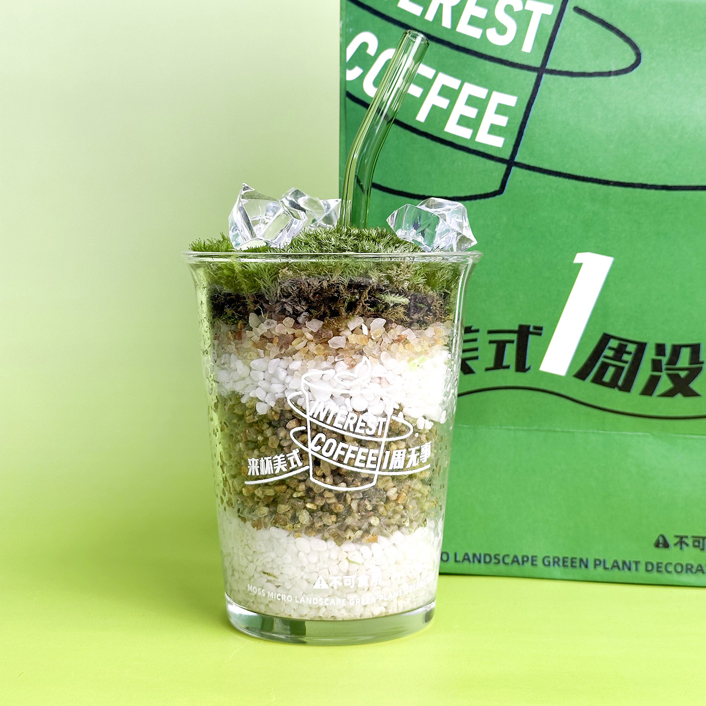 美式咖啡鲜活苔藓微景观办公室桌面绿植摆件DIY小盆栽送朋友礼物
