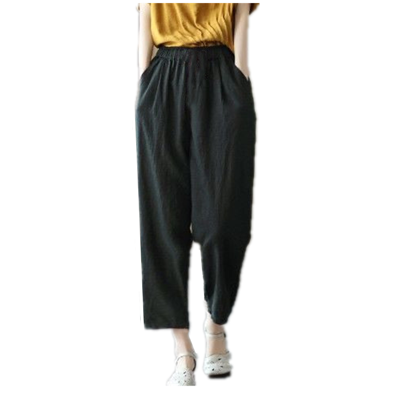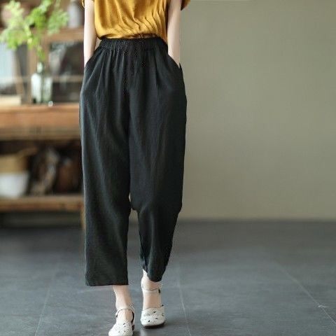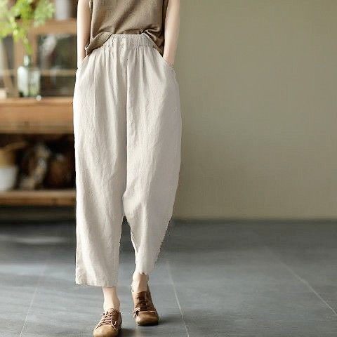 棉麻裤子女松紧腰宽松休闲裤2025夏季新款复古显瘦白色阔腿直筒裤