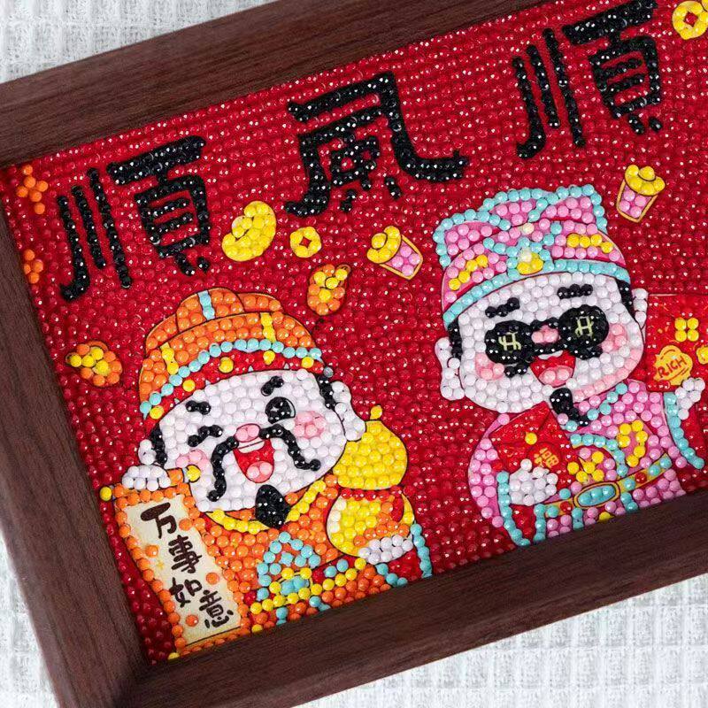 财神爷带框钻石画2026新款高级感国风十字绣满钻顺风顺水福字点钻