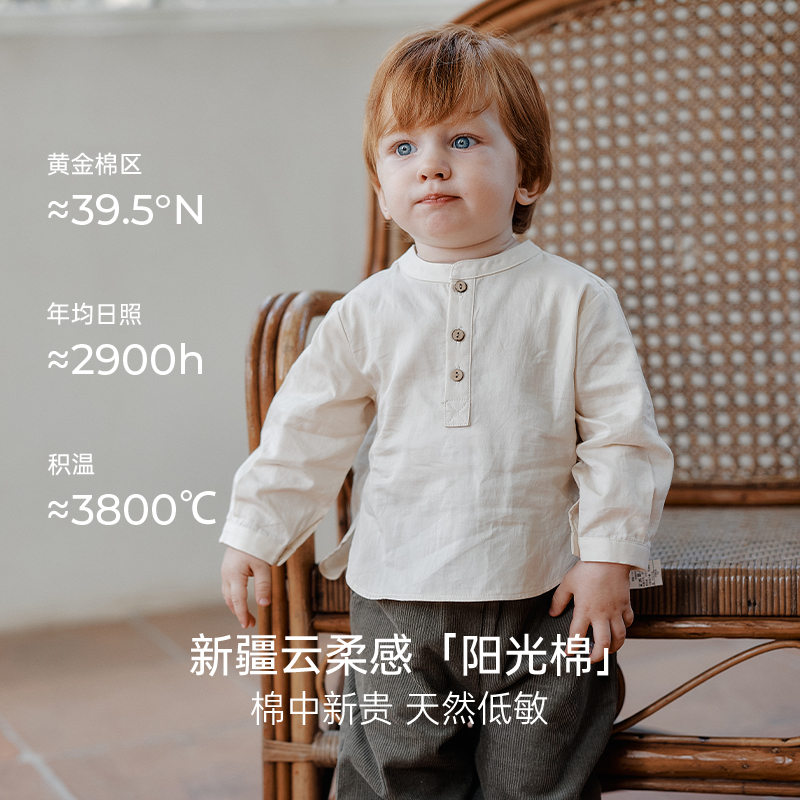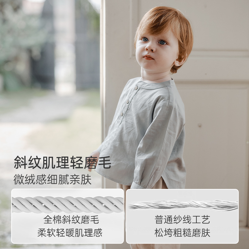 Oak Family秋季儿童长袖立领上衣男女宝宝全棉透气磨毛T恤衬衫