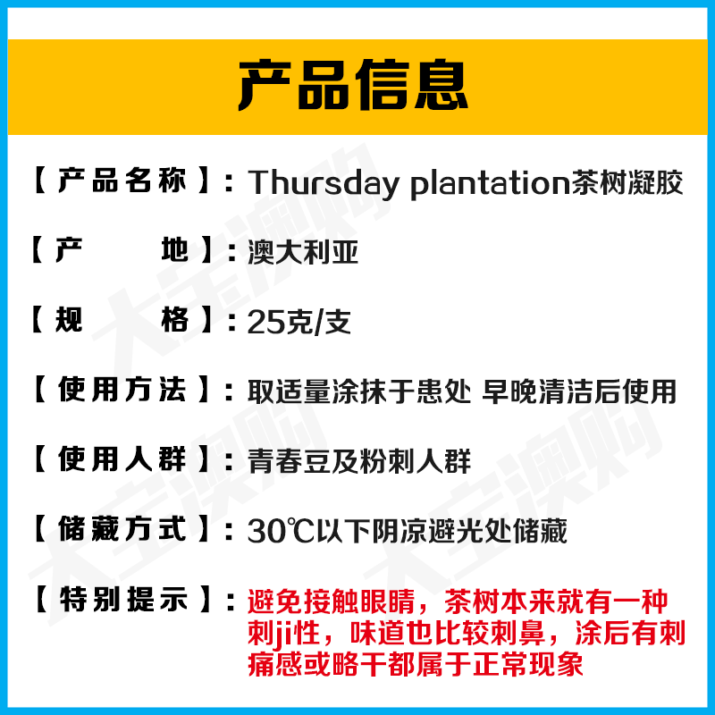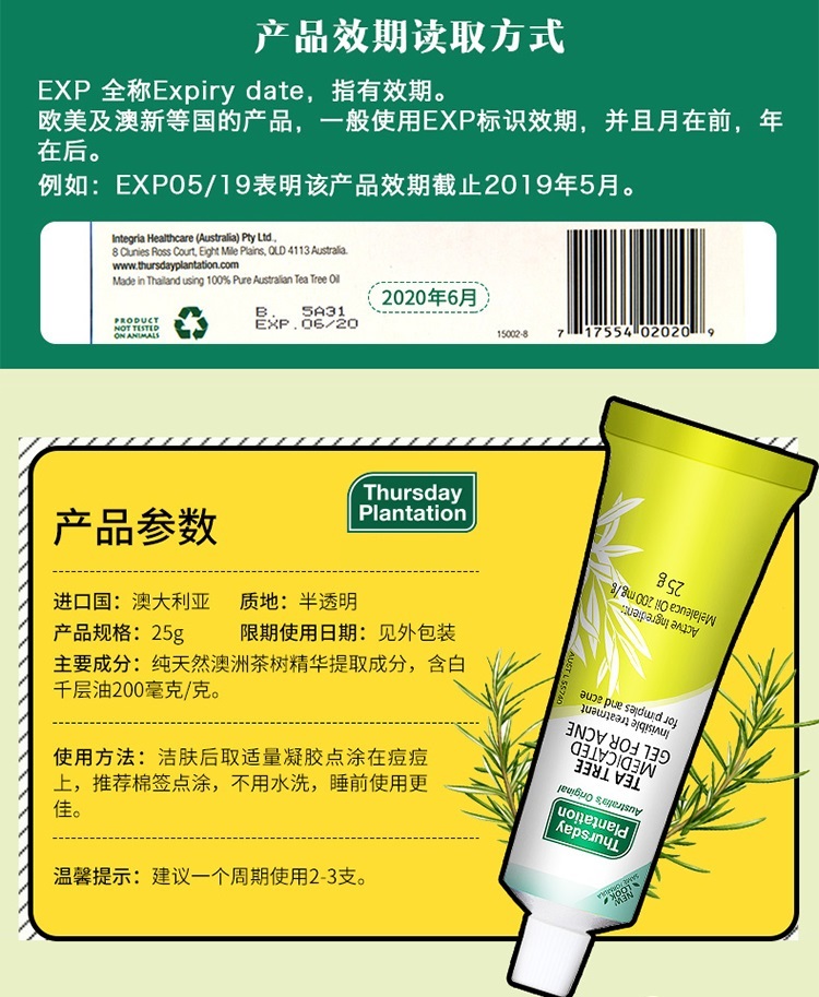澳大利亚星期四农庄茶树祛痘凝胶25克产品星期四去粉刺学生女正品