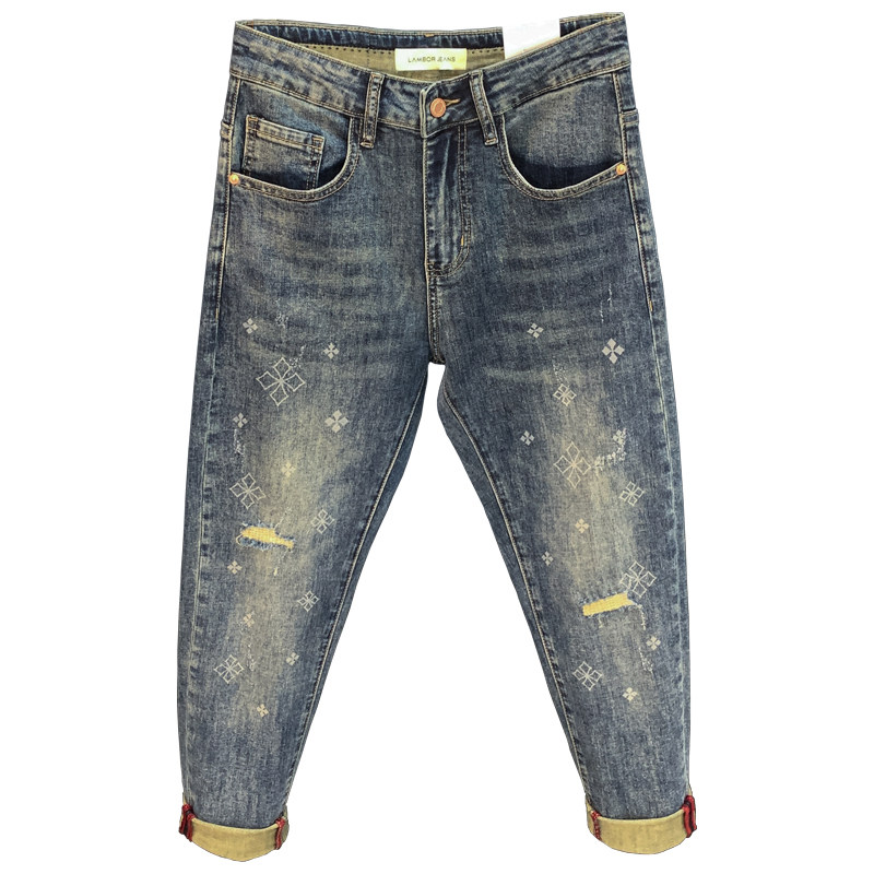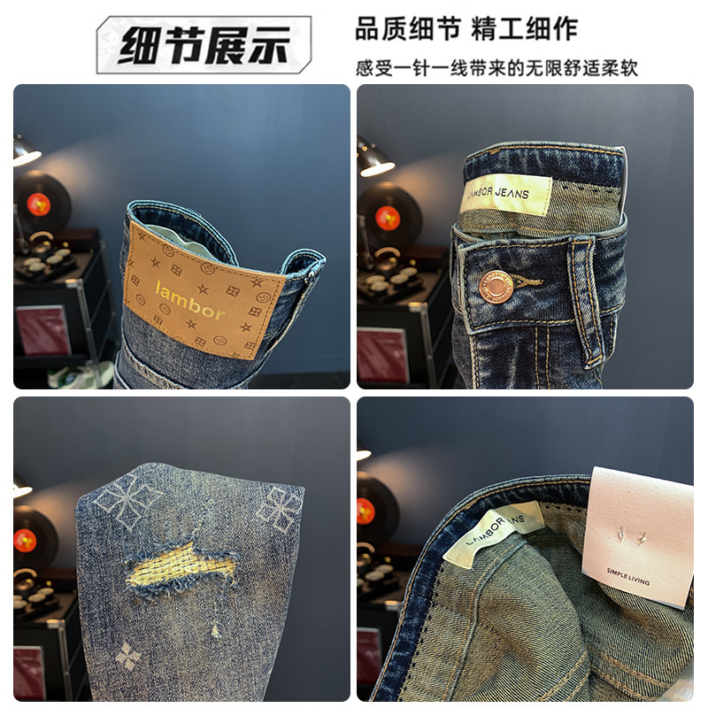 2025夏季新款男士牛仔裤修身小脚九分裤潮流美式弹力男裤子破洞潮