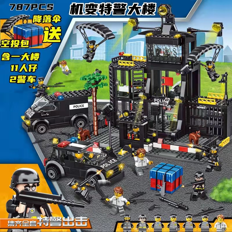 2025新款军事积木警察局大楼建筑拼装玩具益智男女孩生日礼物拼图