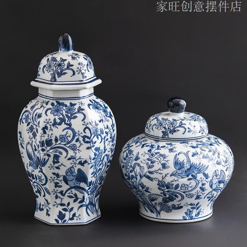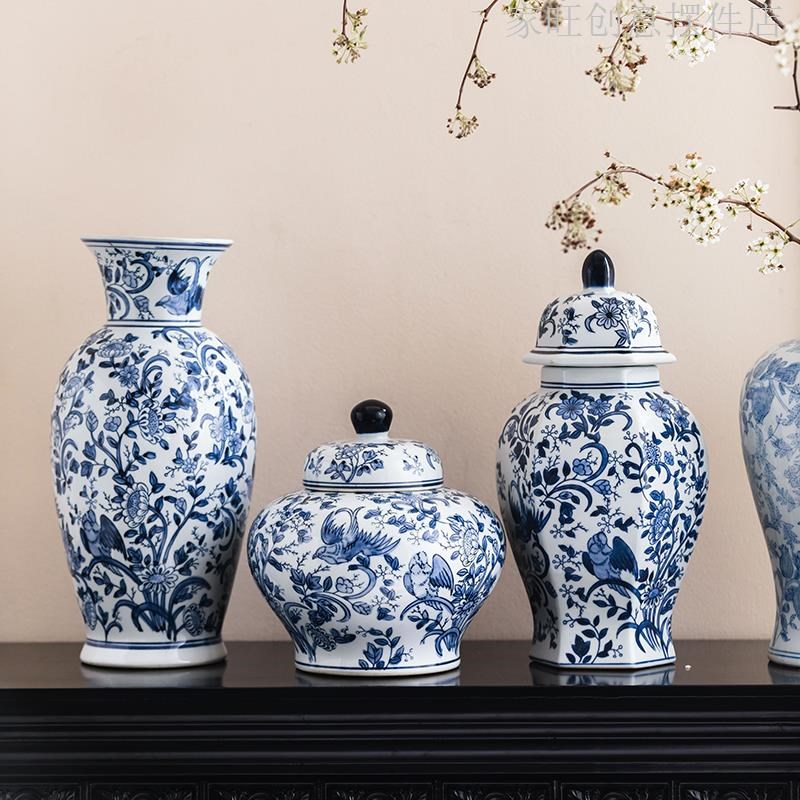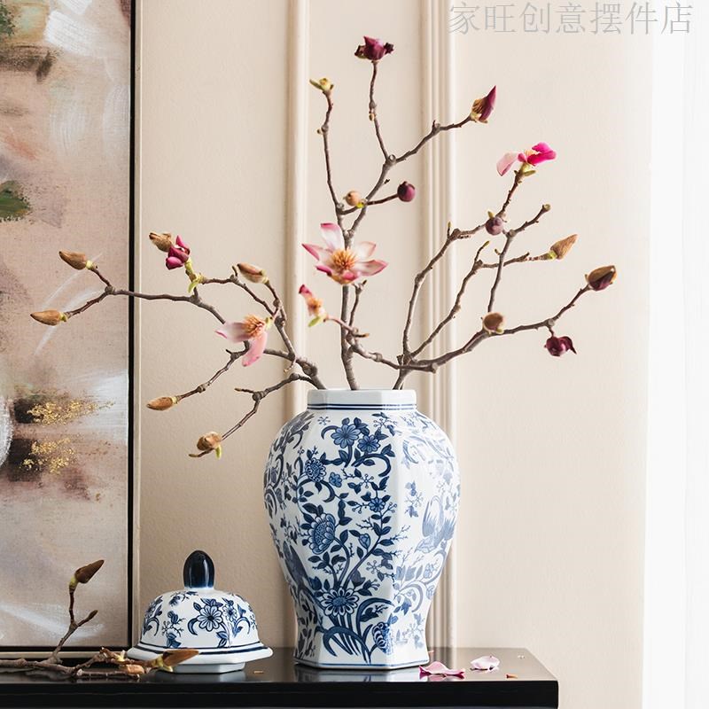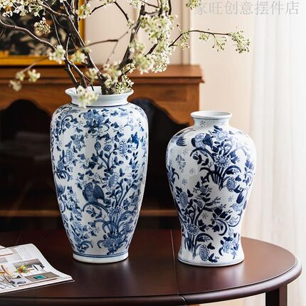 青花瓷花瓶釉下彩手绘陶瓷摆件新中式客厅博古架装饰品冬青果插真