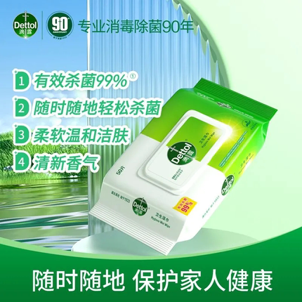 滴露卫生湿巾消毒杀菌50片清洁湿纸巾独立小包装包装家用便携随身