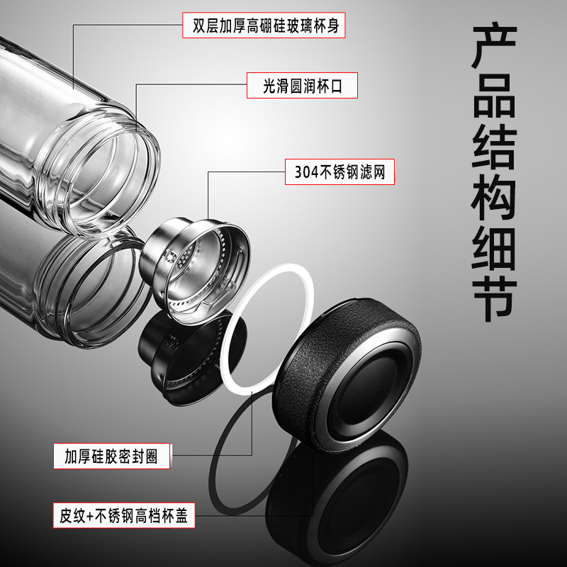 保尔鹅蛋玻璃杯男女双层加厚隔热便携水杯子车载商务居家用泡茶杯