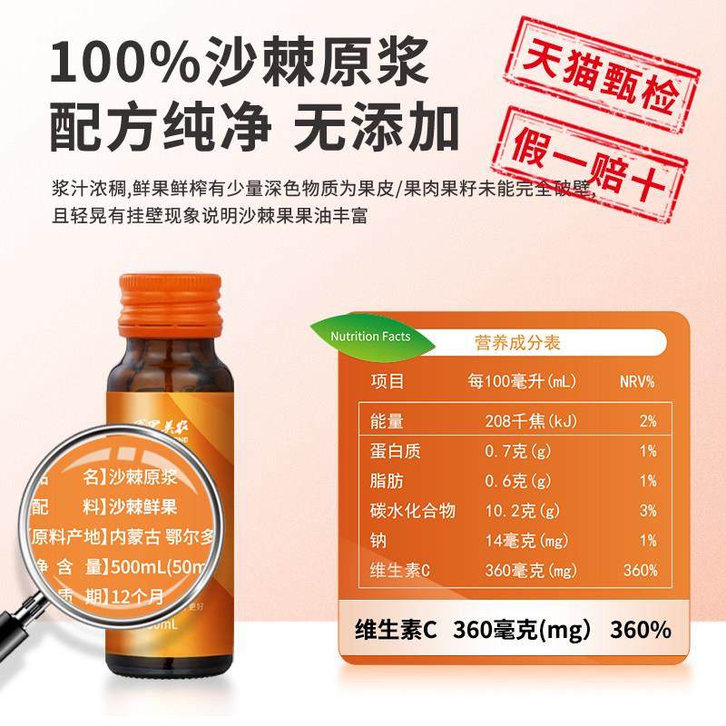 买 一送一沙棘原浆官方旗舰店生榨VC沙棘鲜果油汁内蒙高原小果正