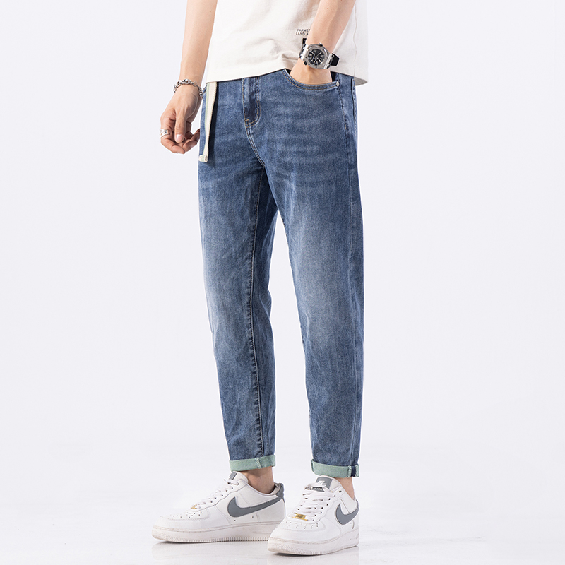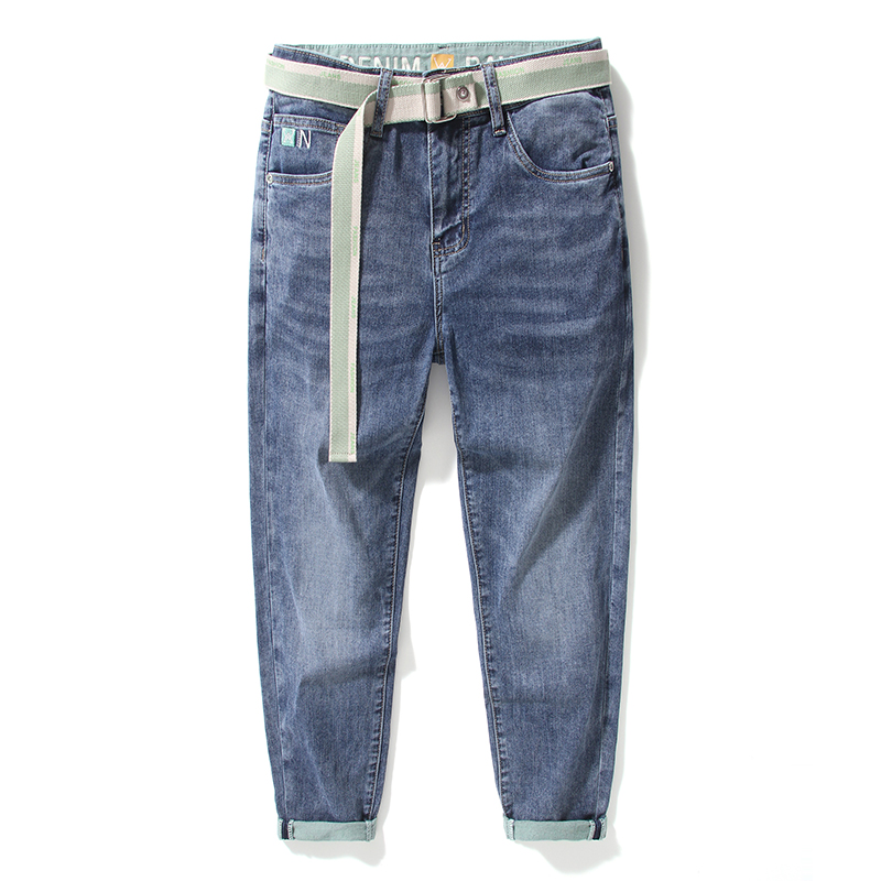 夏季薄款高端九分牛仔裤男修身小脚裤韩版潮流刺绣弹力裤子男9分