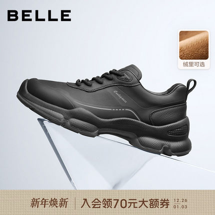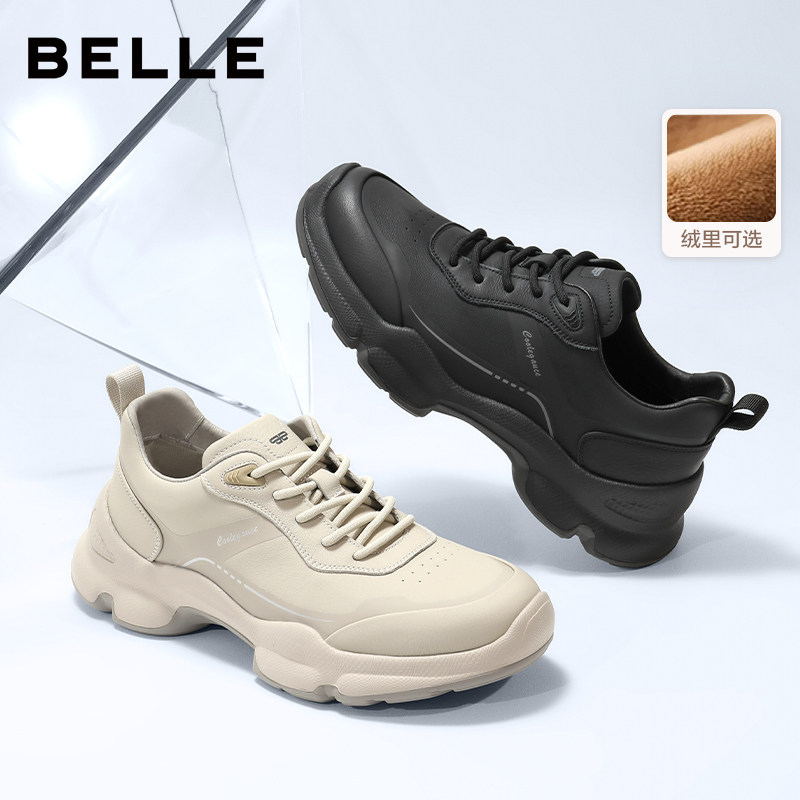 【增高5cm】百丽男士休闲厚底运动健步鞋男冬季户外加绒8VM01CM5