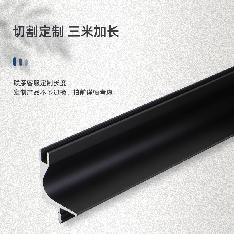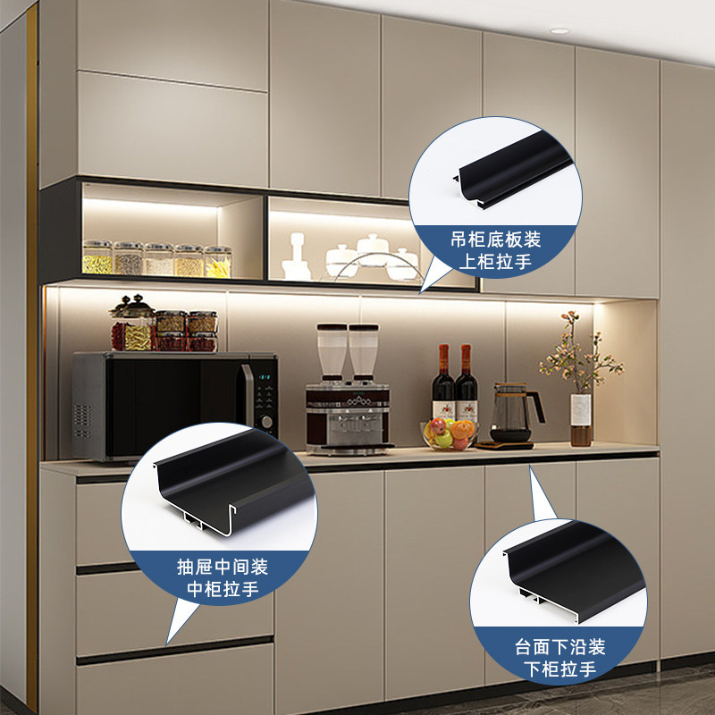 铝合金柜门拉手隐形内嵌入式衣柜抽屉橱柜免拉手U型槽简约L型黑色