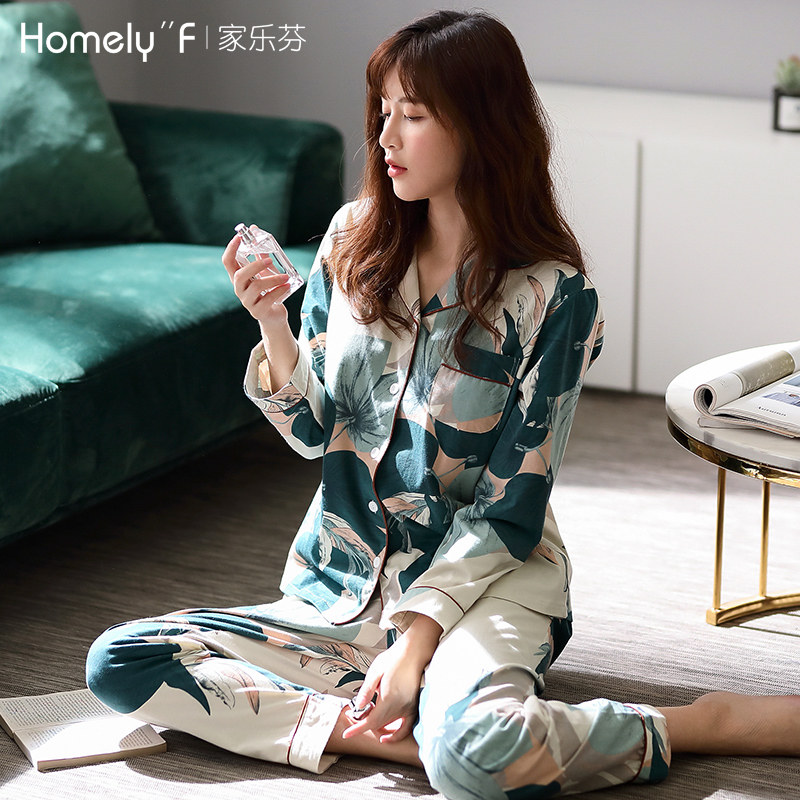 睡衣女士春秋款纯棉长袖家居服春夏季薄款中年妈妈加大码套装