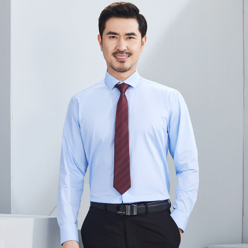 红都新款衬衫男长袖绅士商务正装休闲百搭职业工装寸衫蓝色衬衣男