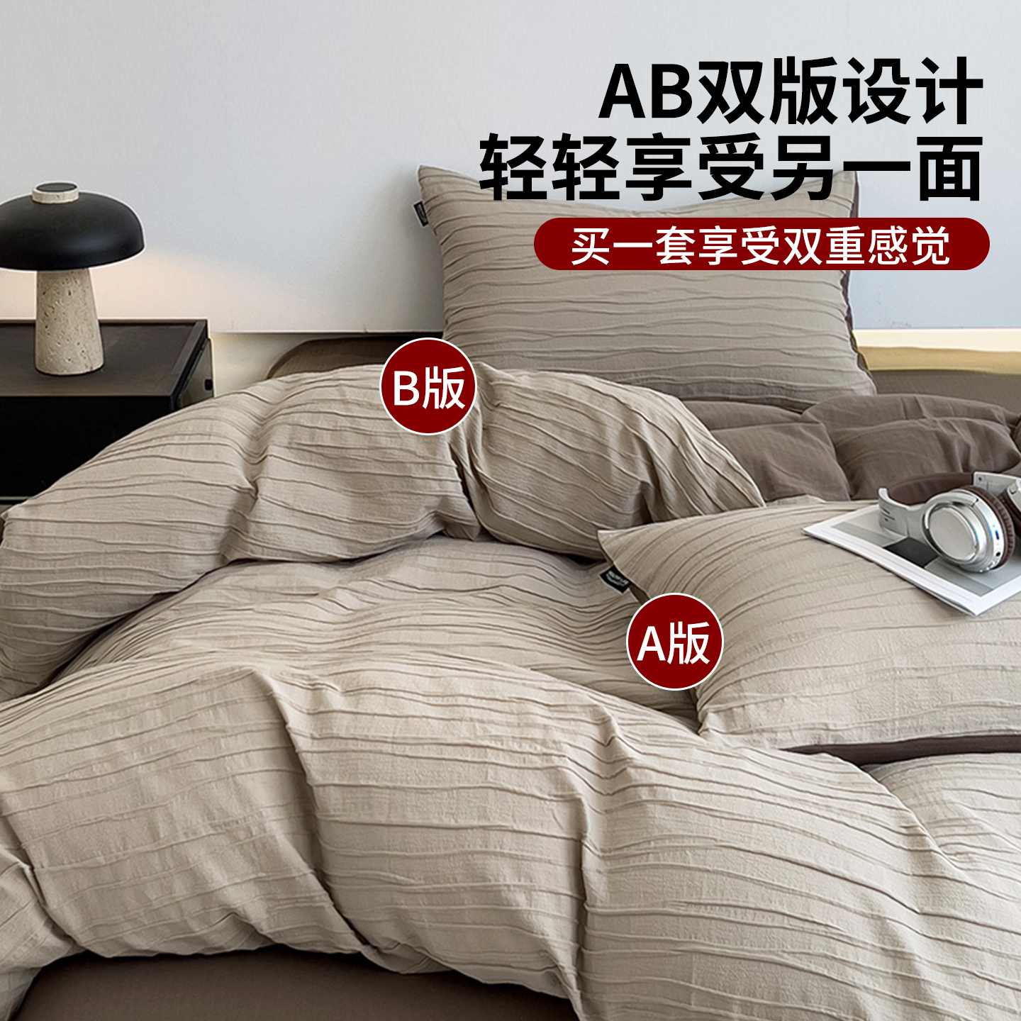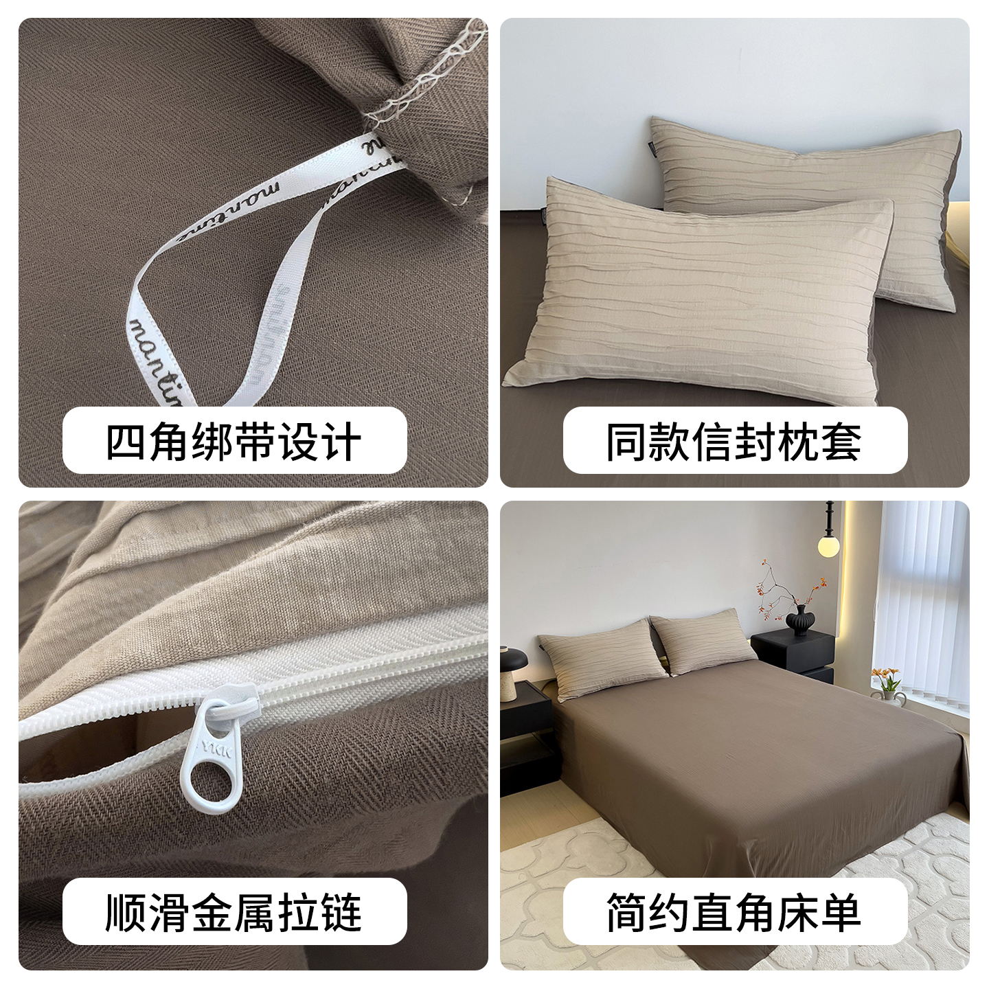 无印良品轻奢高级感皱皱纱床上四件套全棉纯棉水洗棉裸睡床单被套
