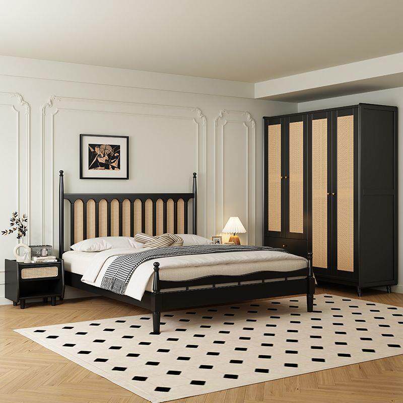 实木藤编床中古风床美式复古床中古风现代简约主卧床卧室成套家具