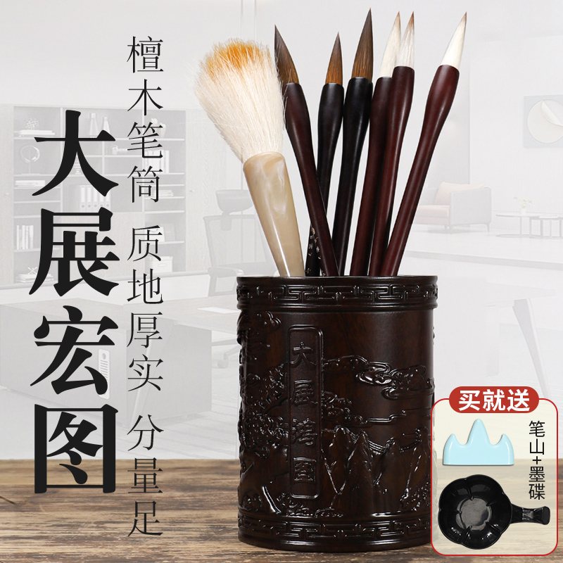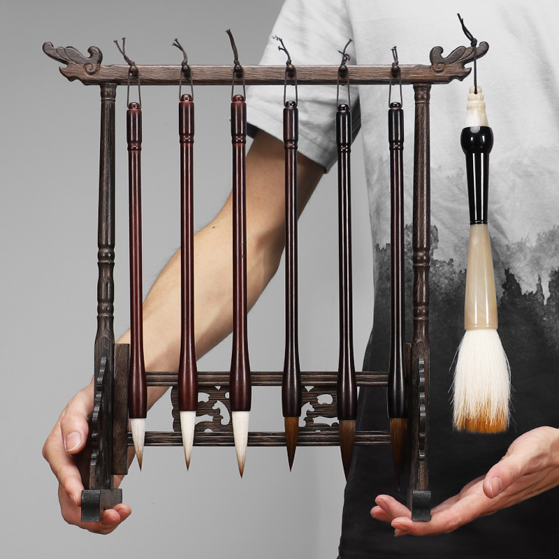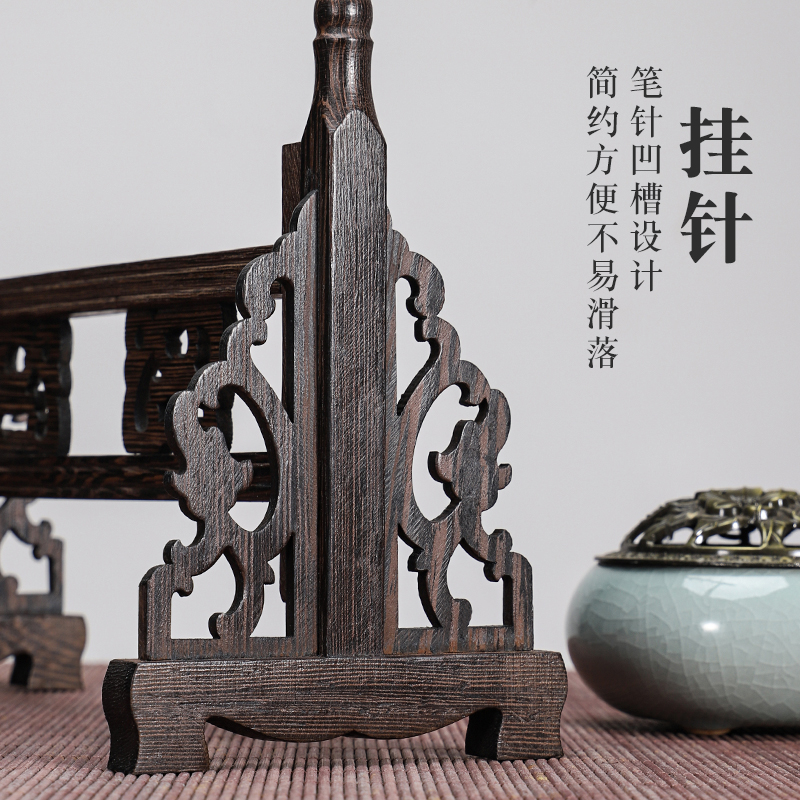 入相笔挂鸡翅木笔挂学生复古中国风实木笔架书法毛笔挂架黑檀木笔筒收纳毛笔文房四宝创意简约新中式书房摆件