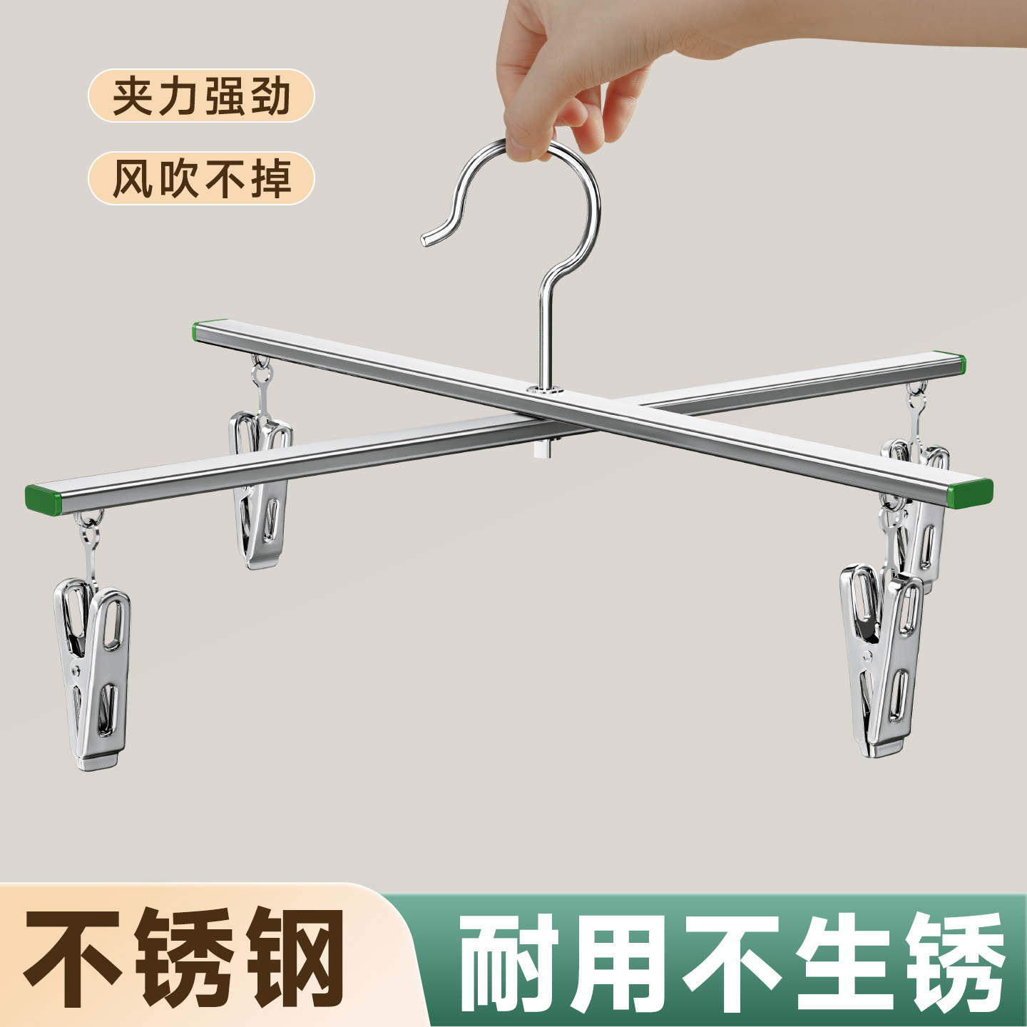 十字不锈钢晾晒裤架多功能家用折叠晒牛仔裤袜子衣服无痕衣架夹子