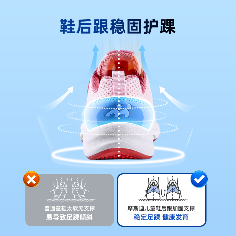 摩斯迪儿童运动女童夏季扁平足机能鞋网面透气中大童小学生跑步鞋