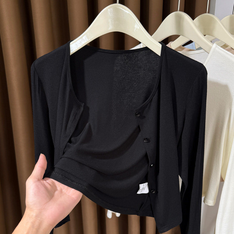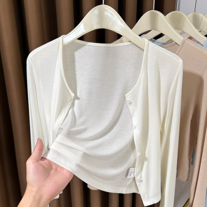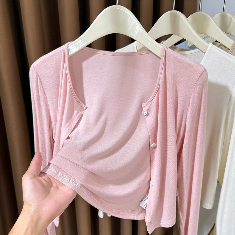 粉色莫代尔防晒开衫女夏季吊带连衣裙小外搭披肩冰丝针织空调罩衫