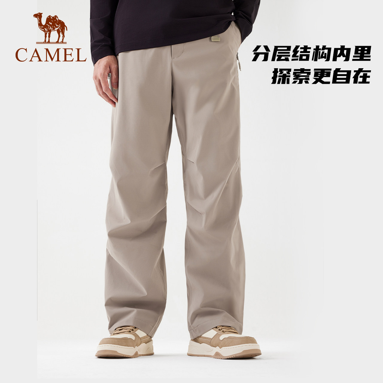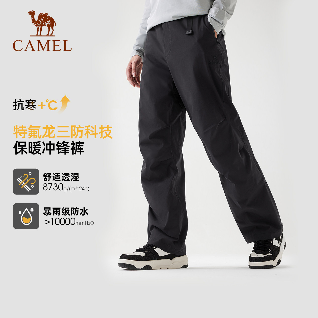 【王俊凯同款】骆驼户外多功能冲锋裤男防风防水伞兵裤秋冬登山裤