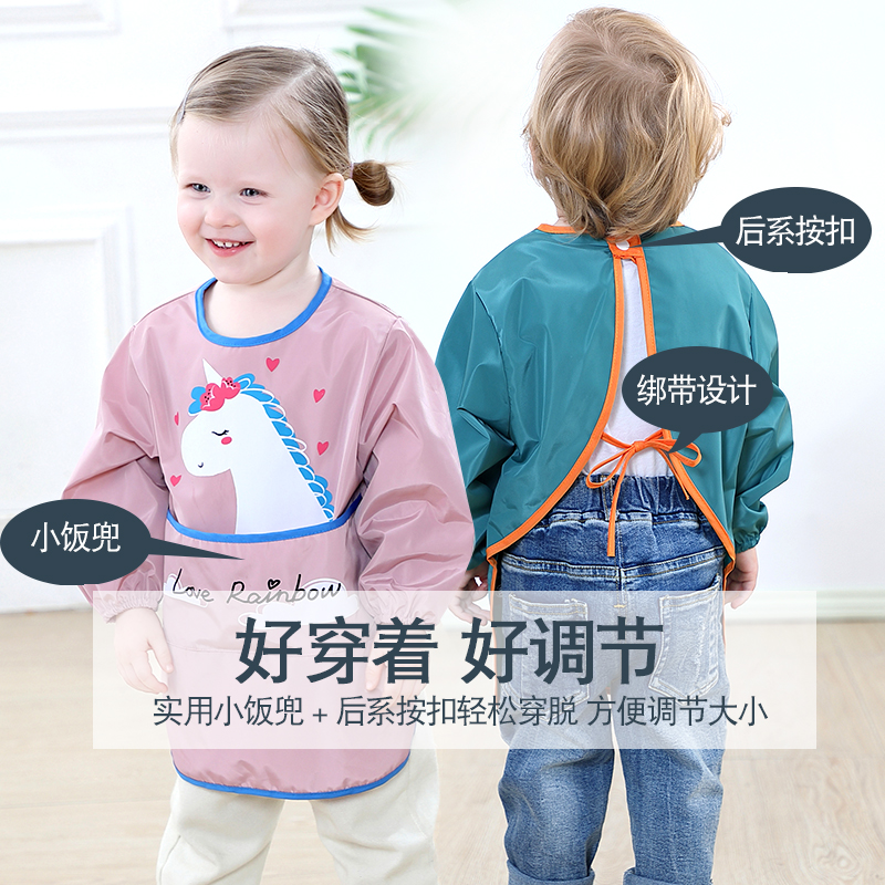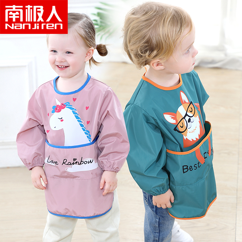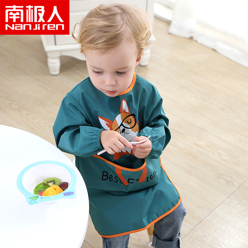南极人儿童防水加长饭兜男女宝宝吃饭衣长袖反穿衣婴儿罩衣护衣