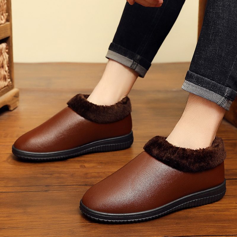 老北京布鞋男棉鞋舒适加厚防水棉靴防滑软底皮面中老年爸爸休闲鞋