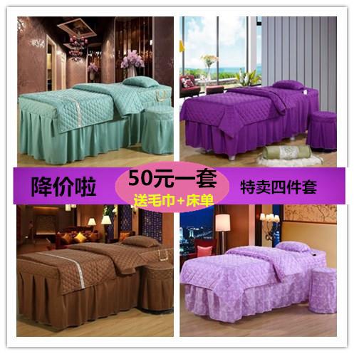 简约纯色美容院床罩单理疗足浴美体按摩洗头推拿体夹棉被套四件套