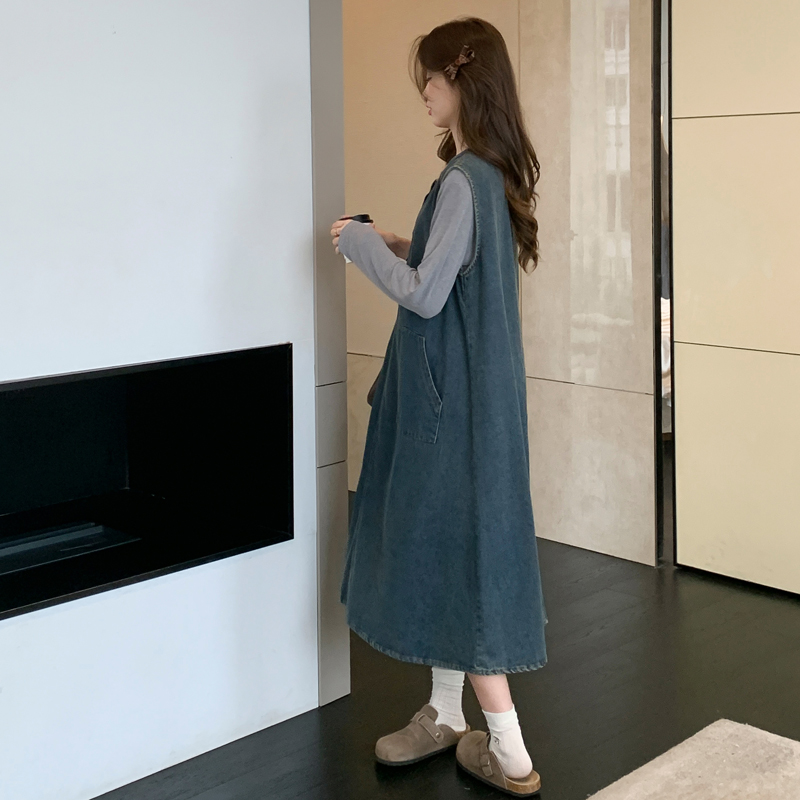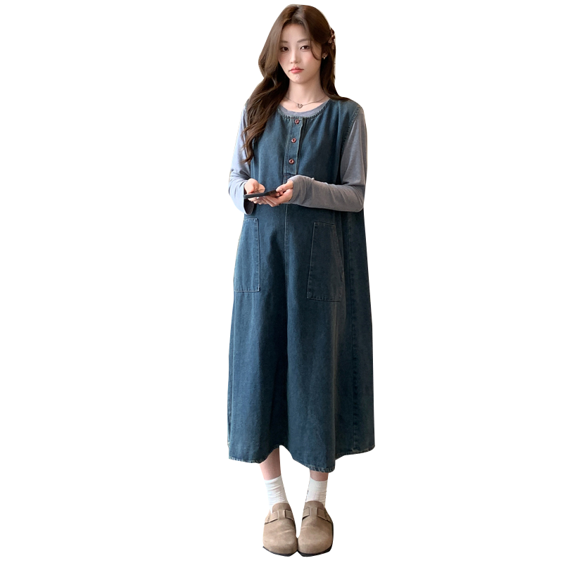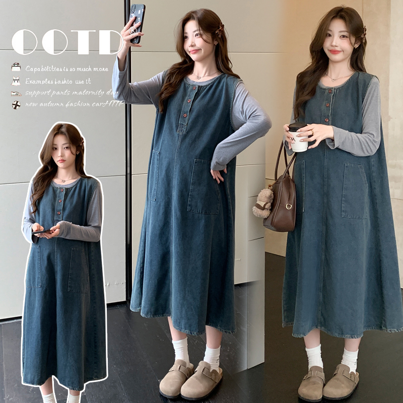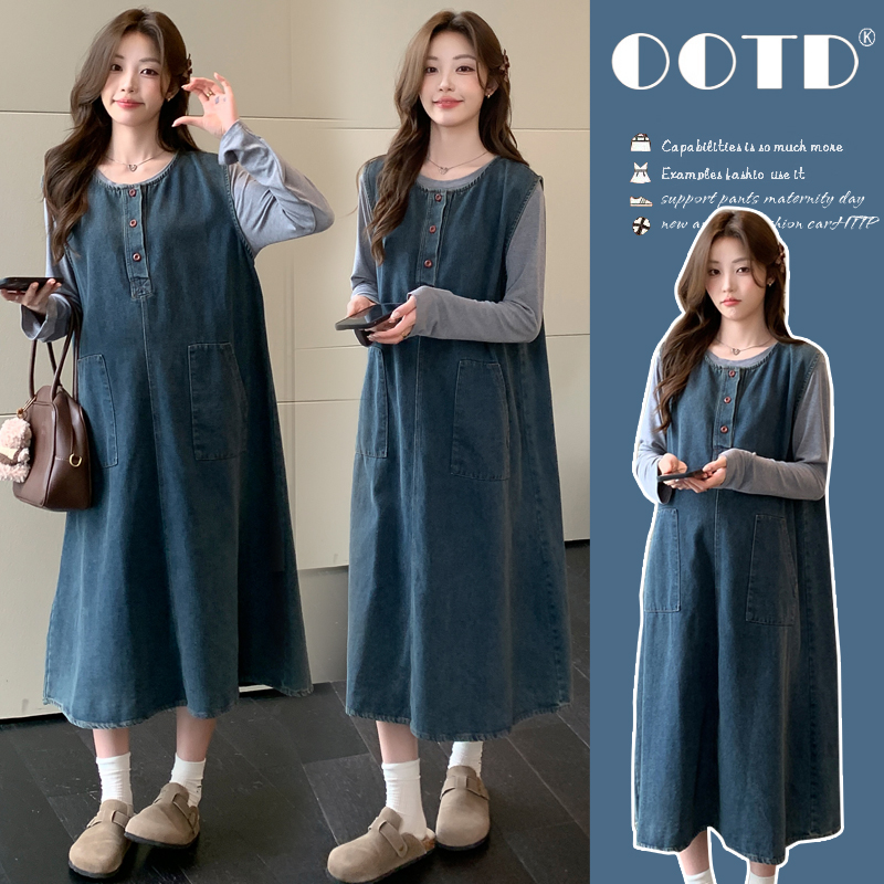 孕妇装牛仔休闲连衣裙2025秋季新款韩版宽松大码中长款两件套装