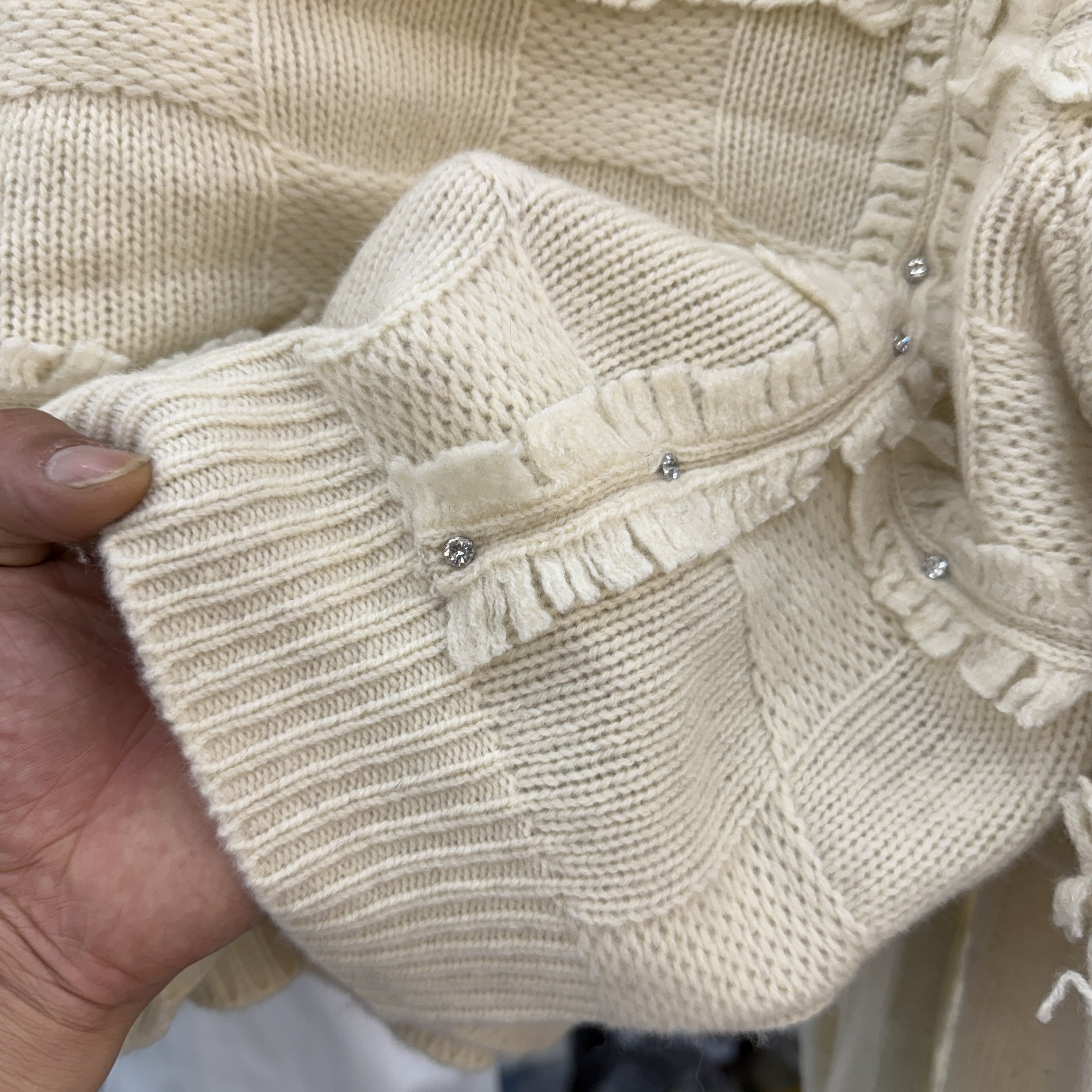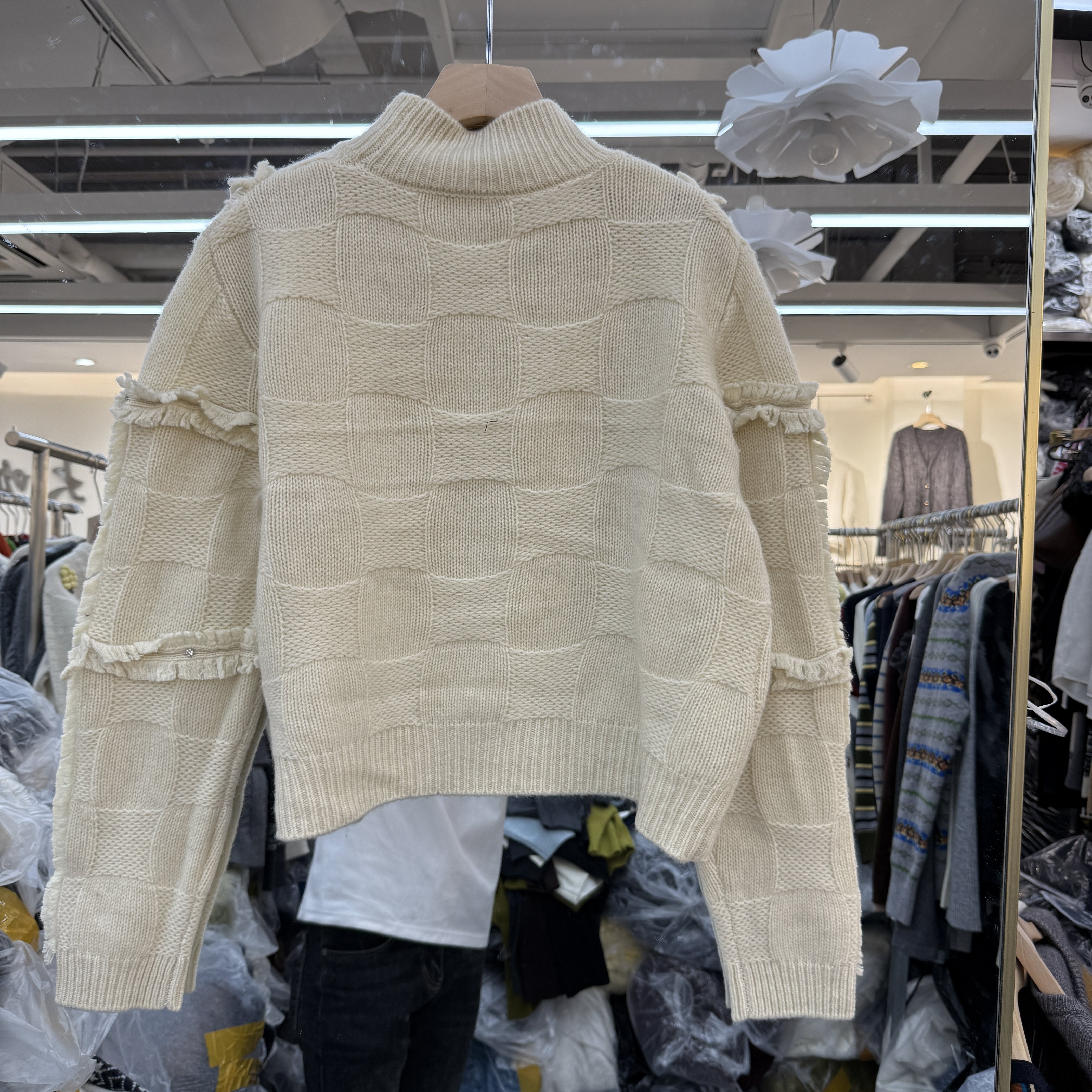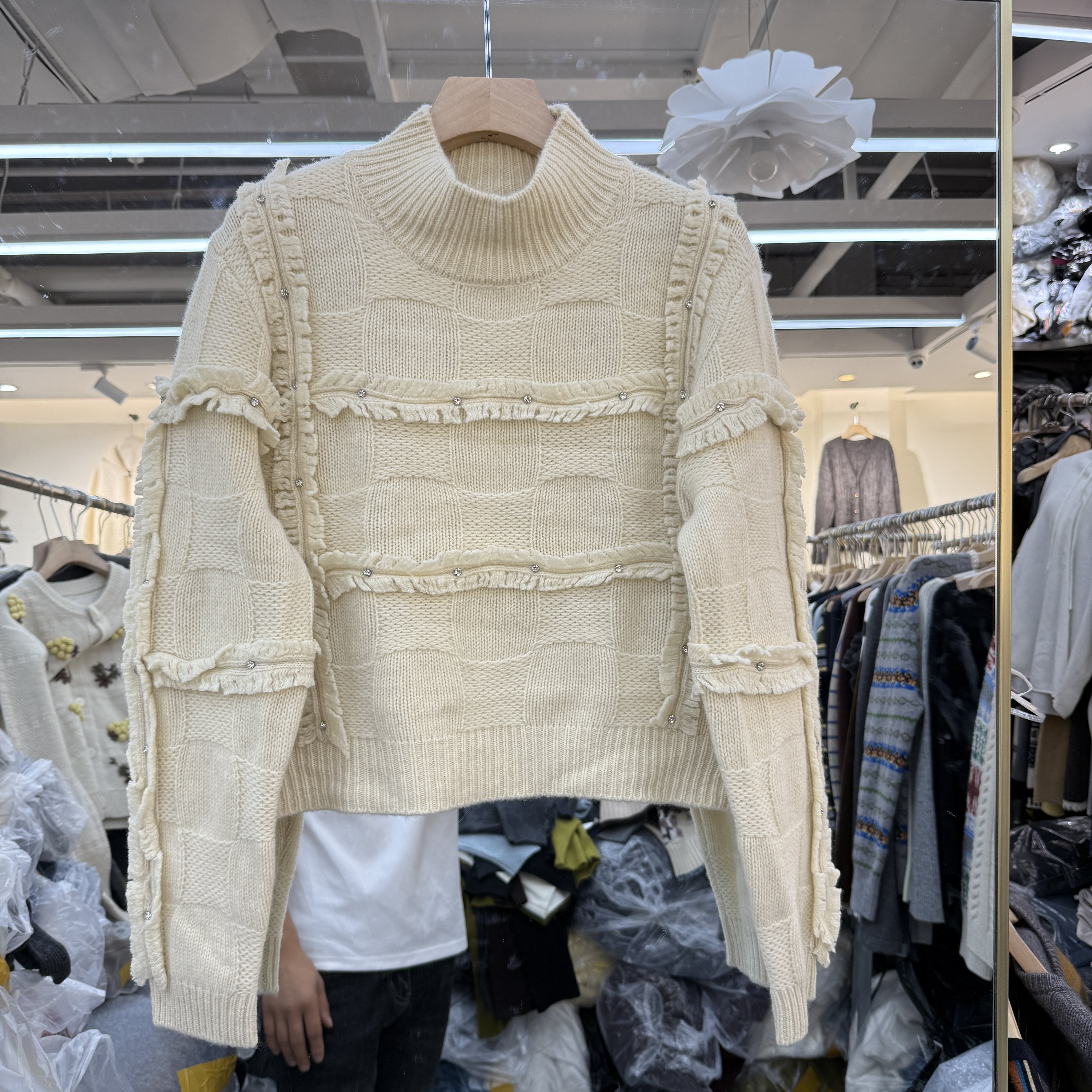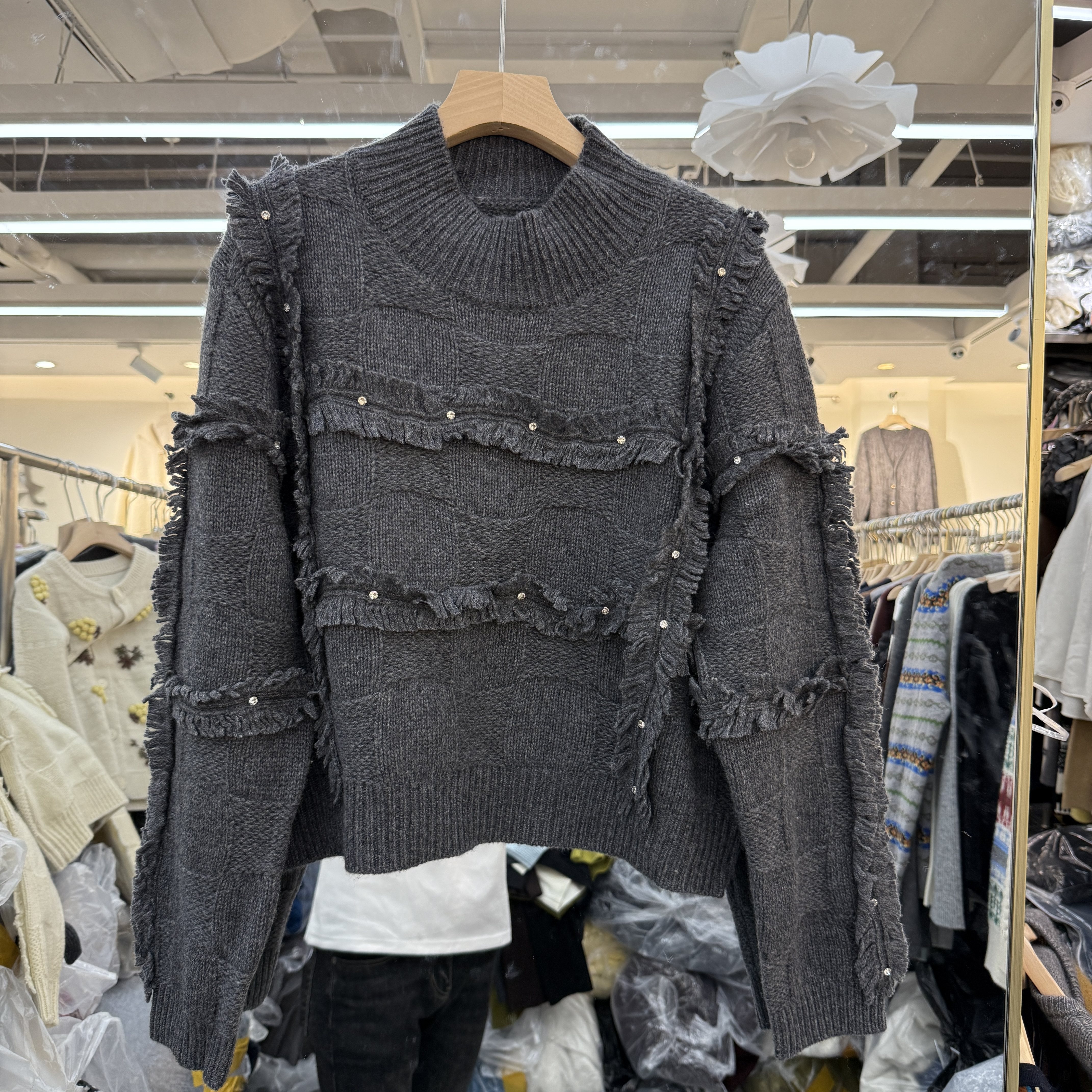 欧洲站2025秋冬新款半高领毛边流苏钉钻宽松高级感长袖羊毛毛衣女