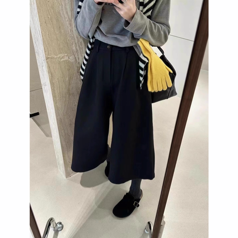 十三行女装简约百搭毛呢阔腿八分裤女冬季新款高腰显瘦百搭休闲裤