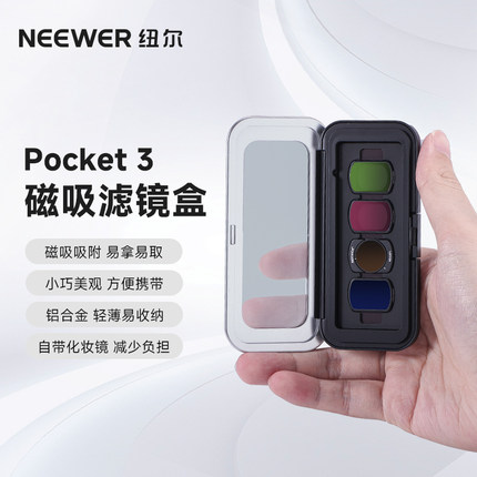 NEEWER纽尔适用DJI大疆Pocket3滤镜镜头收纳空盒CPL滤镜磁吸空盒ND减光镜黑柔增广角镜自由组合眼影磁吸空盒