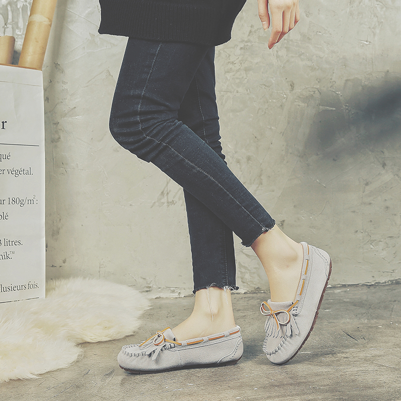 新款真皮豆豆鞋女春秋夏流苏蝴蝶结孕妇大码妈妈休闲平底单鞋