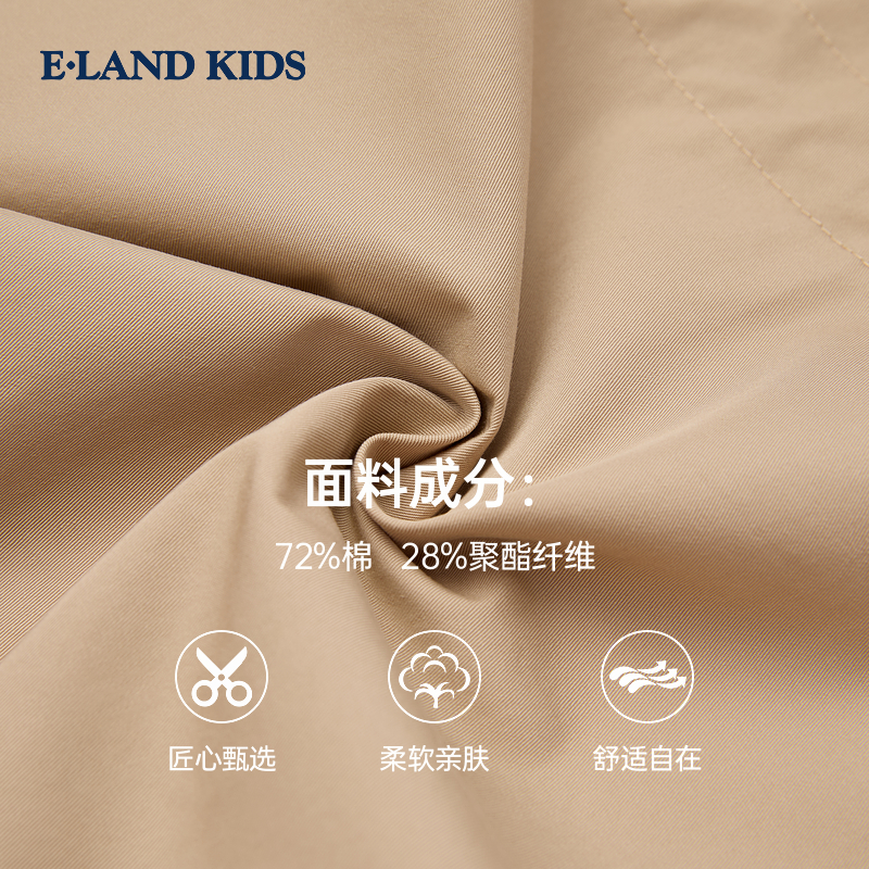 eland kids衣恋童装女童外套2025年秋季新品英伦风刺绣连帽风衣