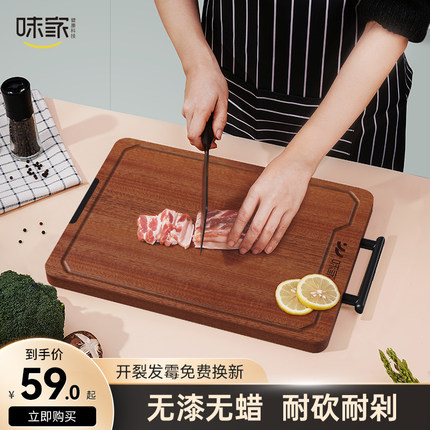 味家乌檀木菜板厨房专用双面案板整木切菜板抗菌防霉家用实木砧板