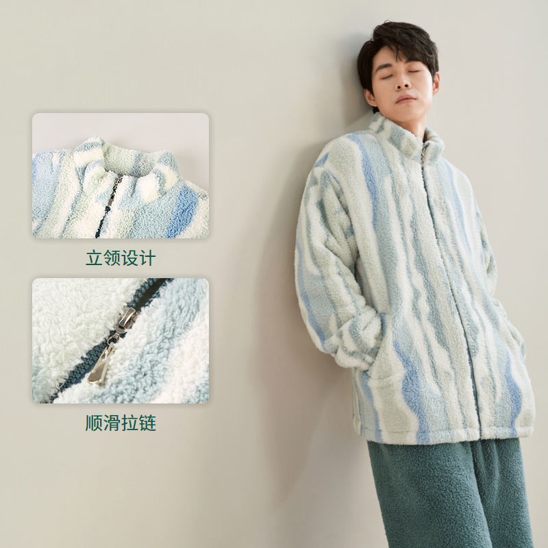 安之伴【巨保暖】珊瑚绒情侣睡衣女款男士冬季拼色加厚家居服套装