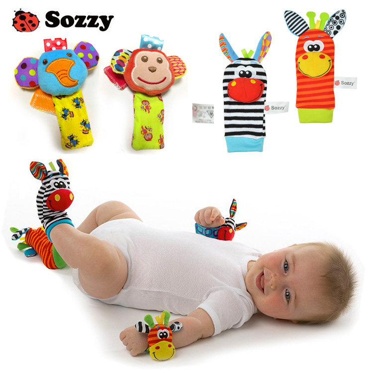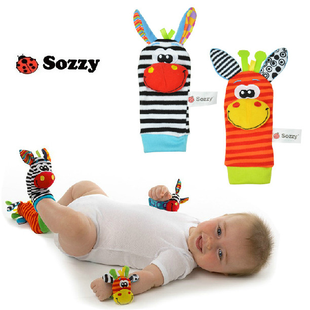 宝宝动物手腕带袜子带摇铃响铃响纸0-1岁手表带新生婴儿安抚玩具