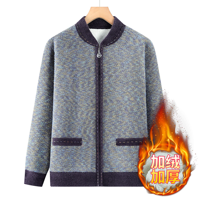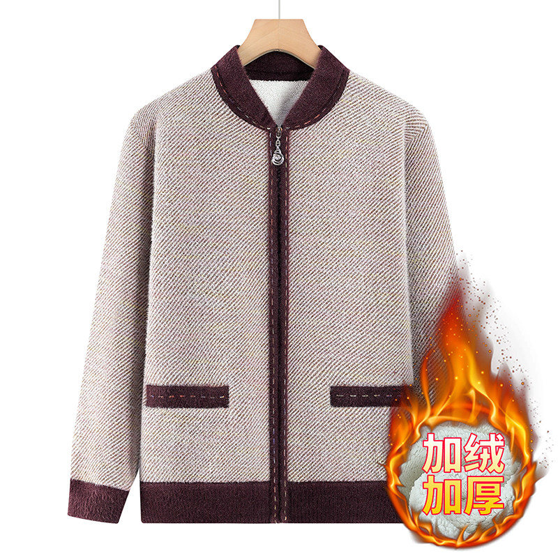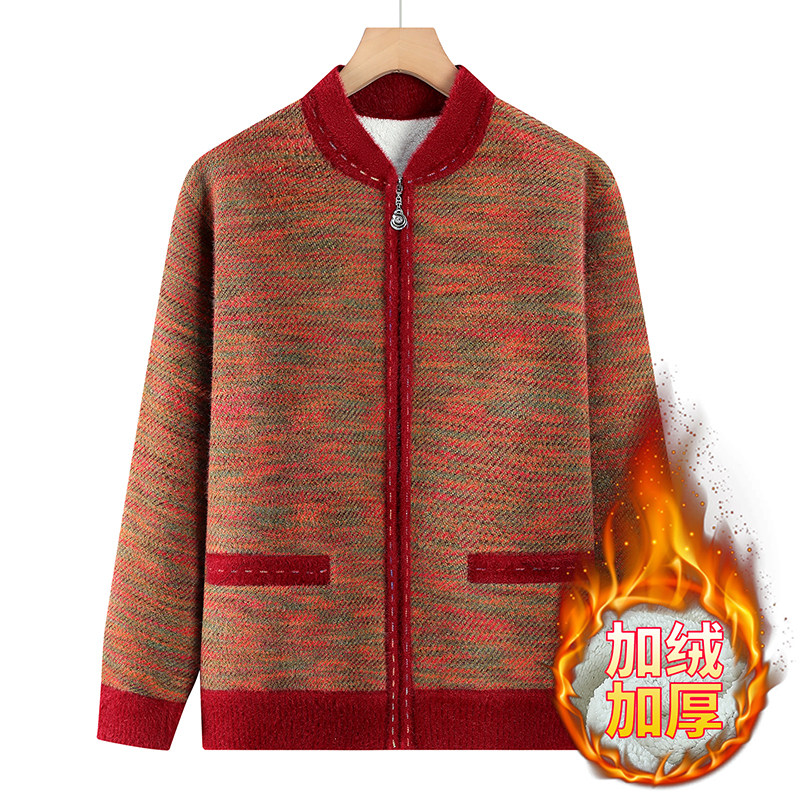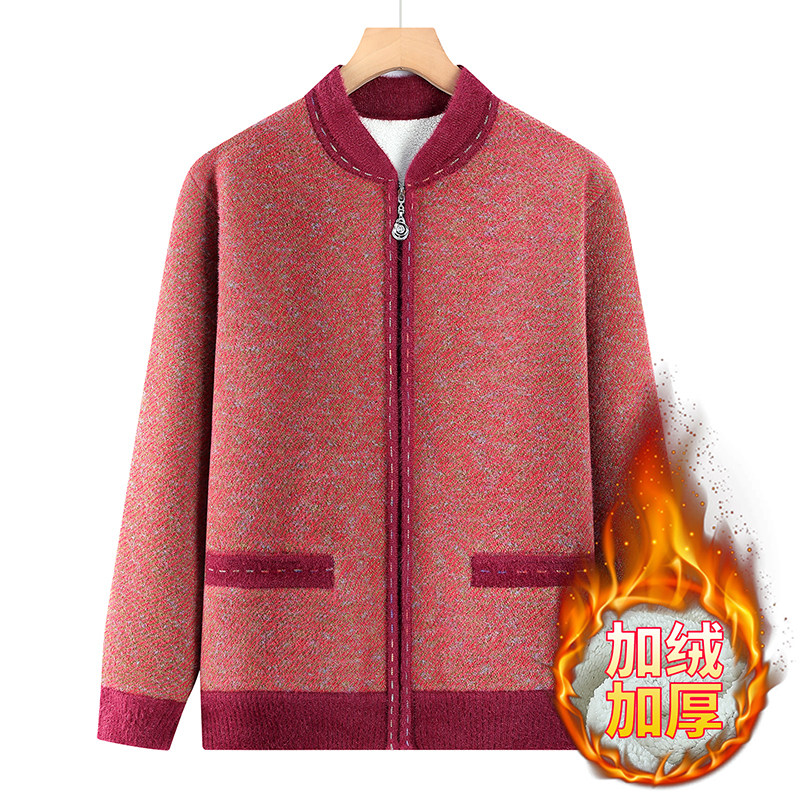 奶奶秋冬时尚加绒水貂绒保暖外套宽松百搭中老年妈妈洋气针织开衫