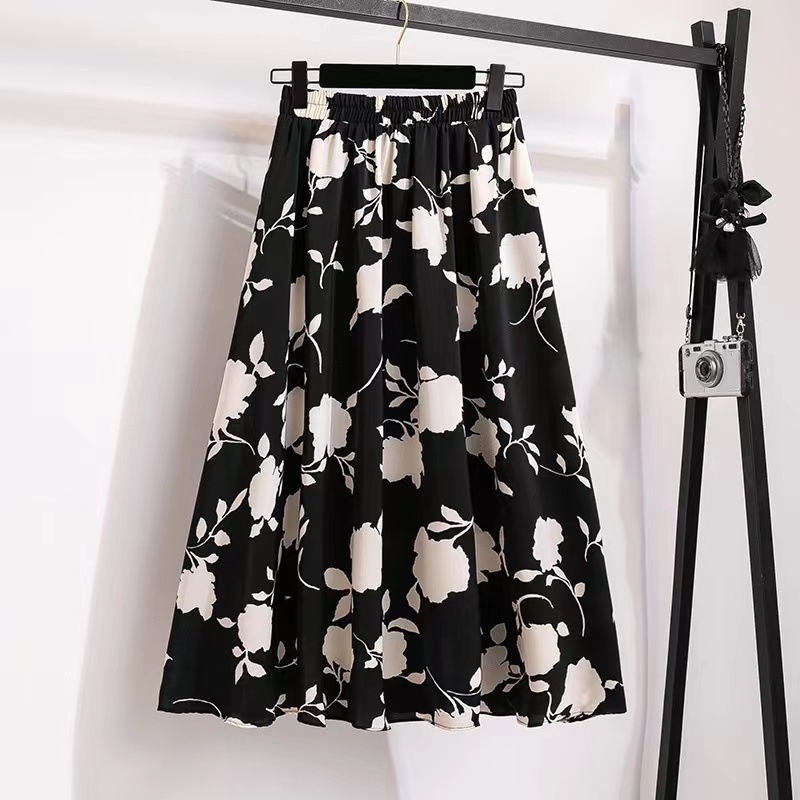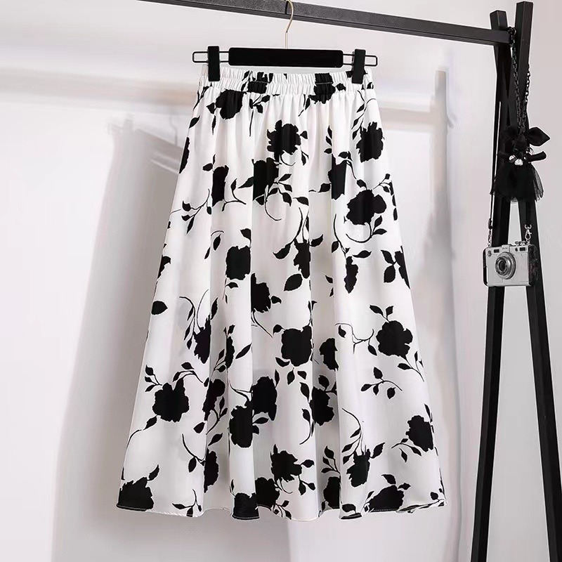 大码女装高腰显瘦遮胯大摆裙2023年夏季胖MM中长款洋气玫瑰