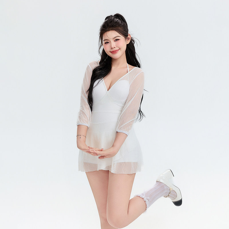 连体泳衣女款微胖遮肉高级感游泳衣大码胖mm性感白色海边度假泳装
