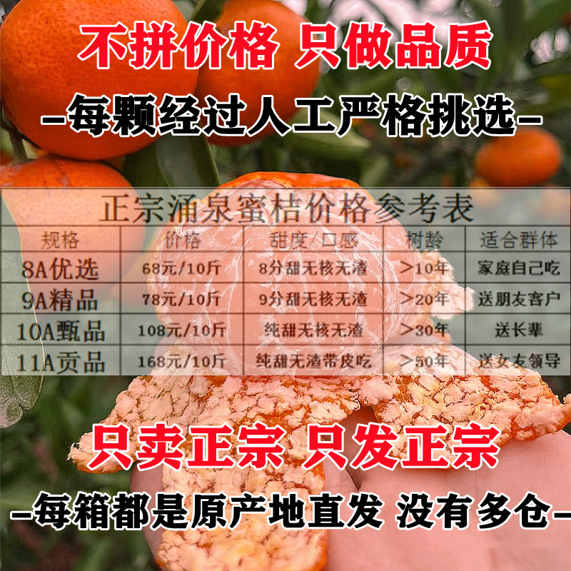正宗浙江临海涌泉蜜桔旗舰店新鲜10斤当季整箱水果无核甜黄岩橘子