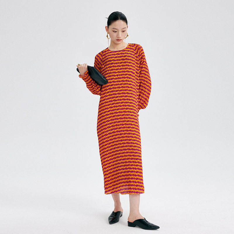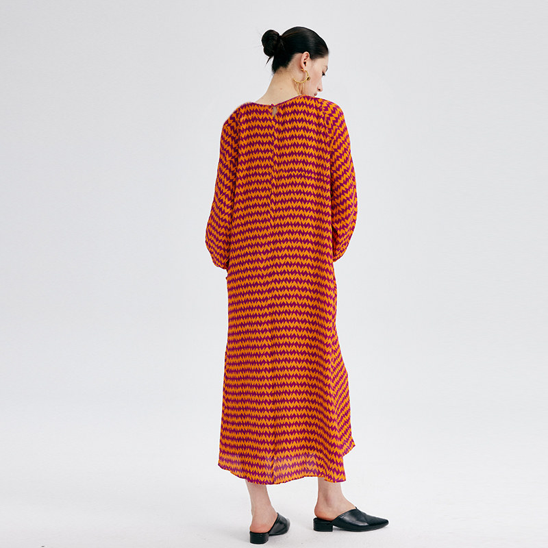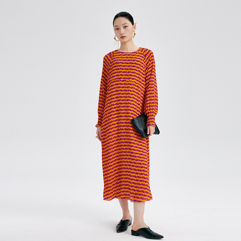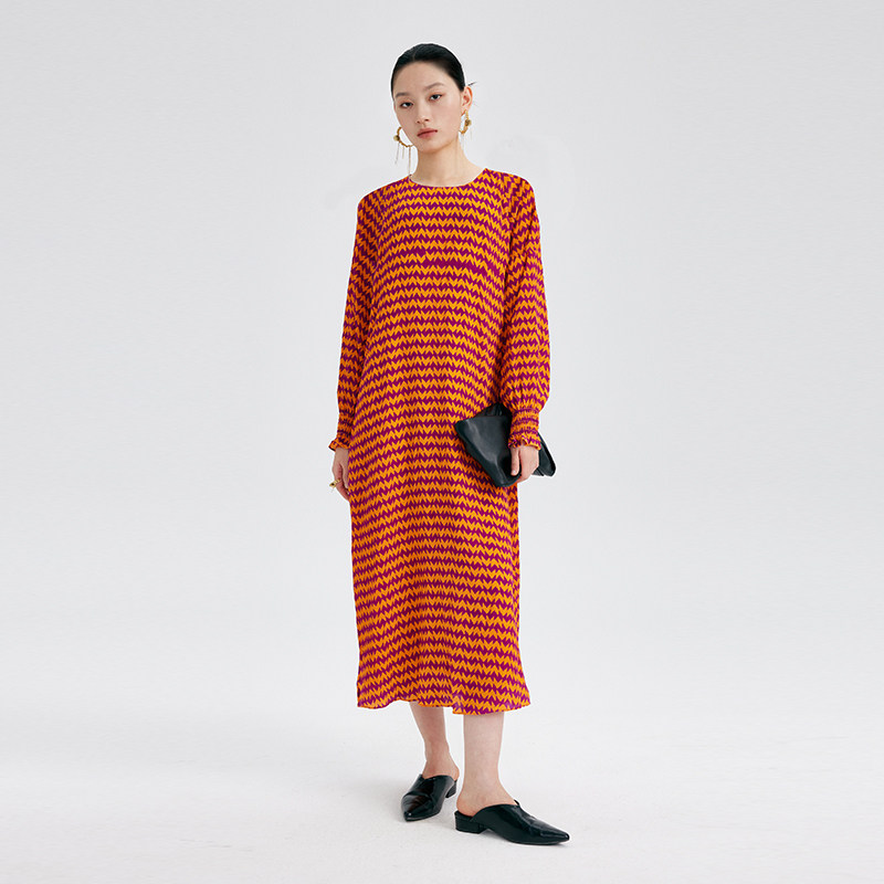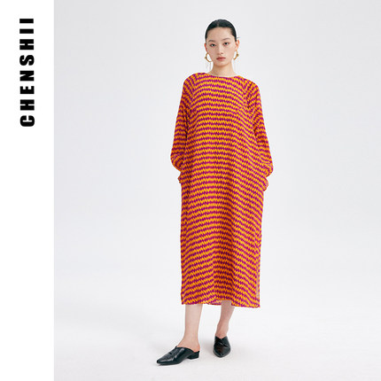 CHENSHII26春季新款法式真丝几何印花宽松气质连衣裙女长裙高级感