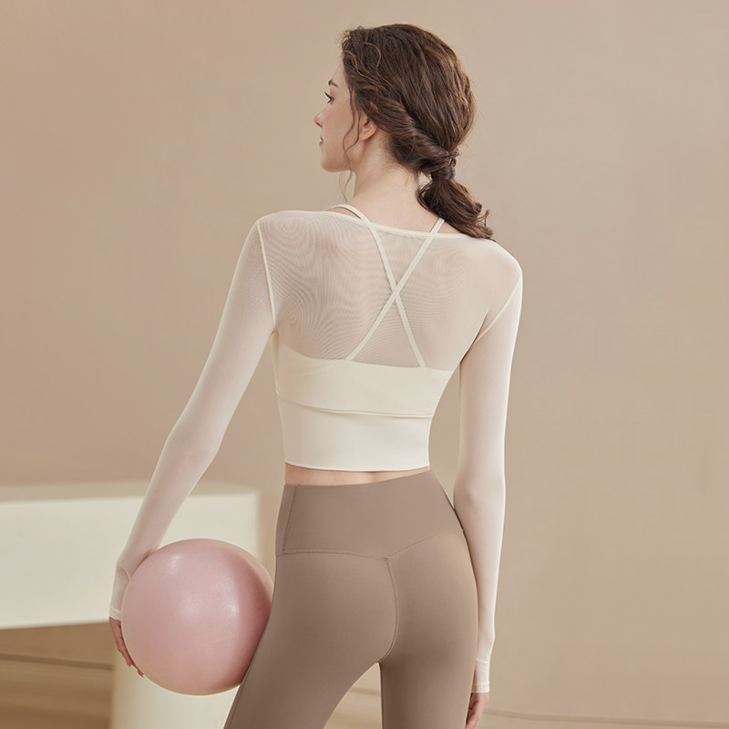 瑜伽服女春秋上衣长袖普拉提训练服2024新款跑步运动紧身健身套装