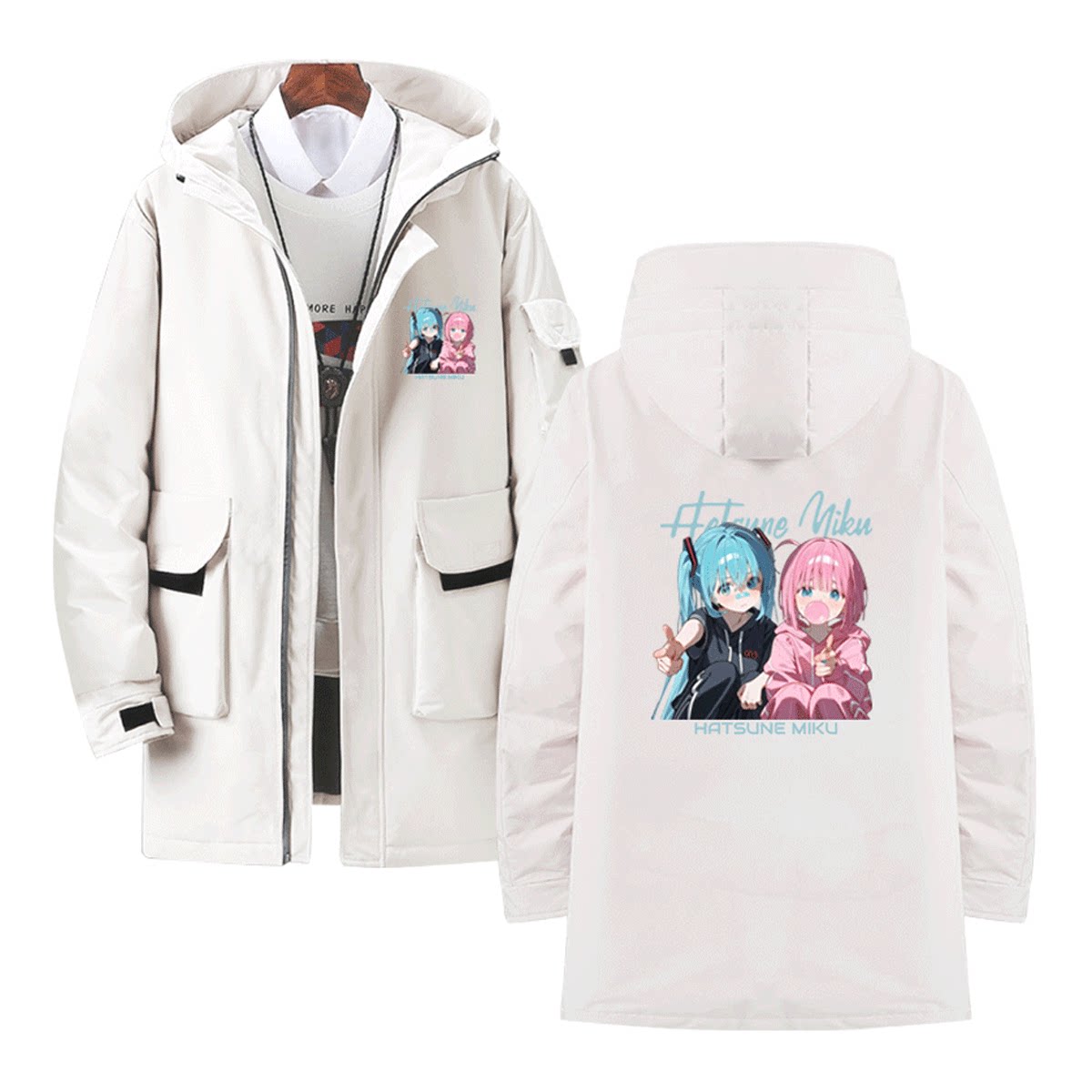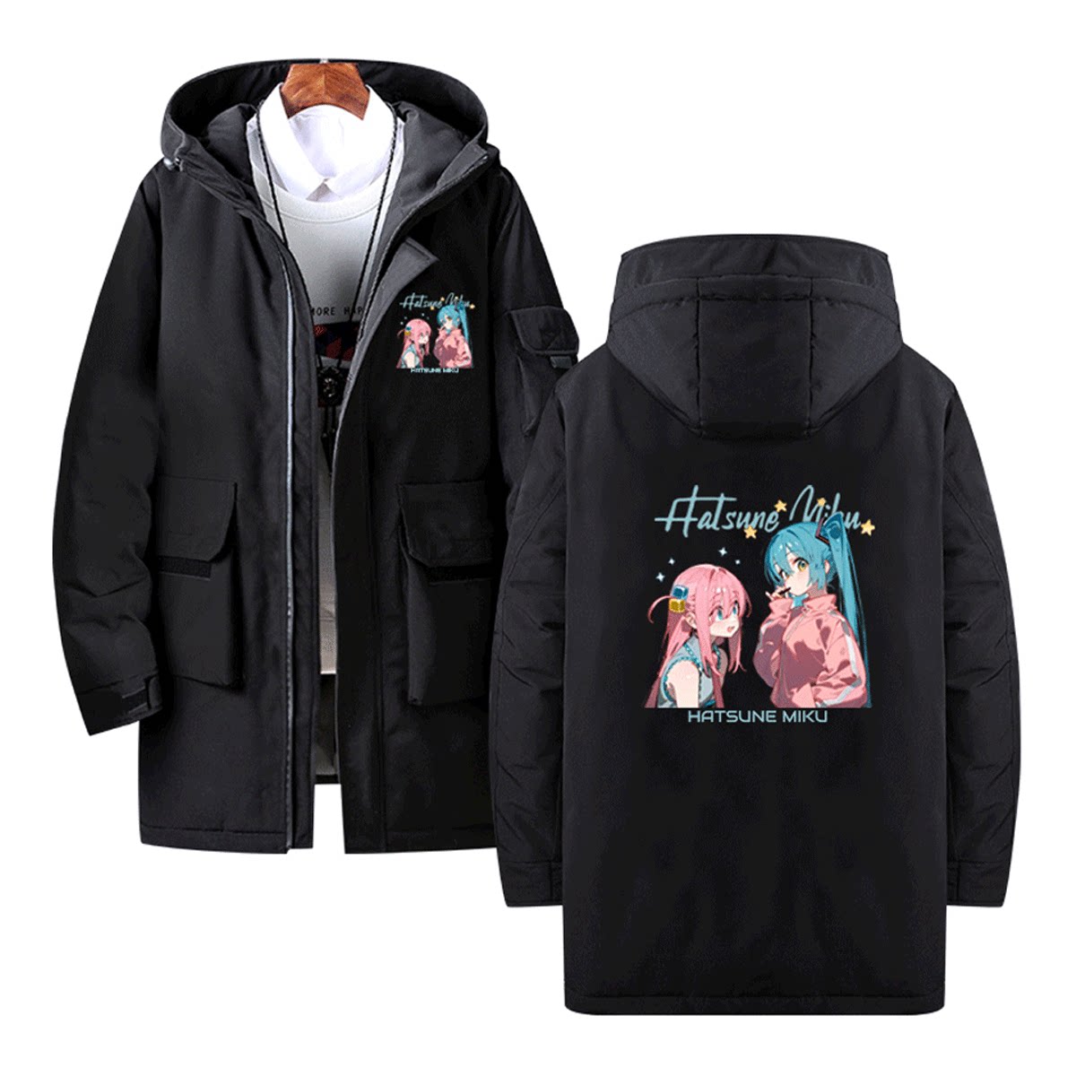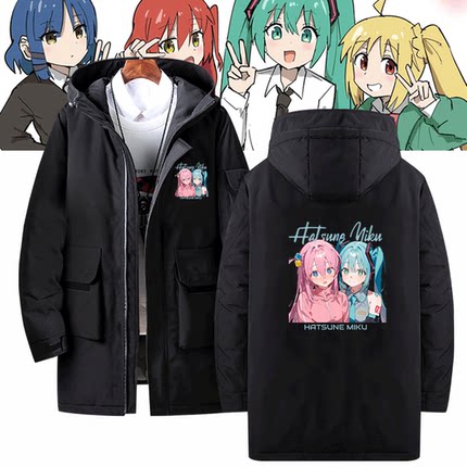 孤独摇滚联名初音联名未来动漫周边男女可定制中长款连帽冬羽绒服