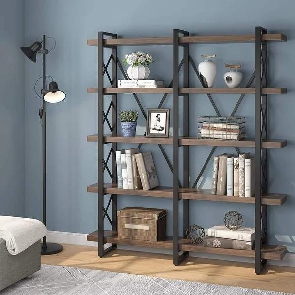 美式置物架落地式花架复古书架客厅铁艺收纳架实木简约搁板展示架
