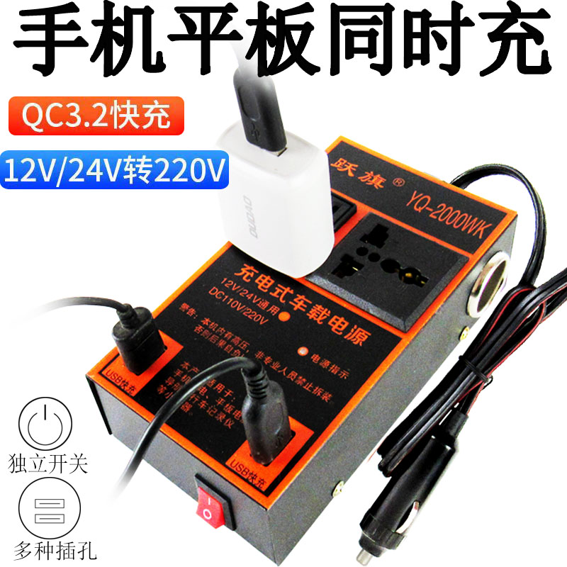 车载逆变器12V/24V转220V家用汽车货车插座充电逆变转换器USB快充