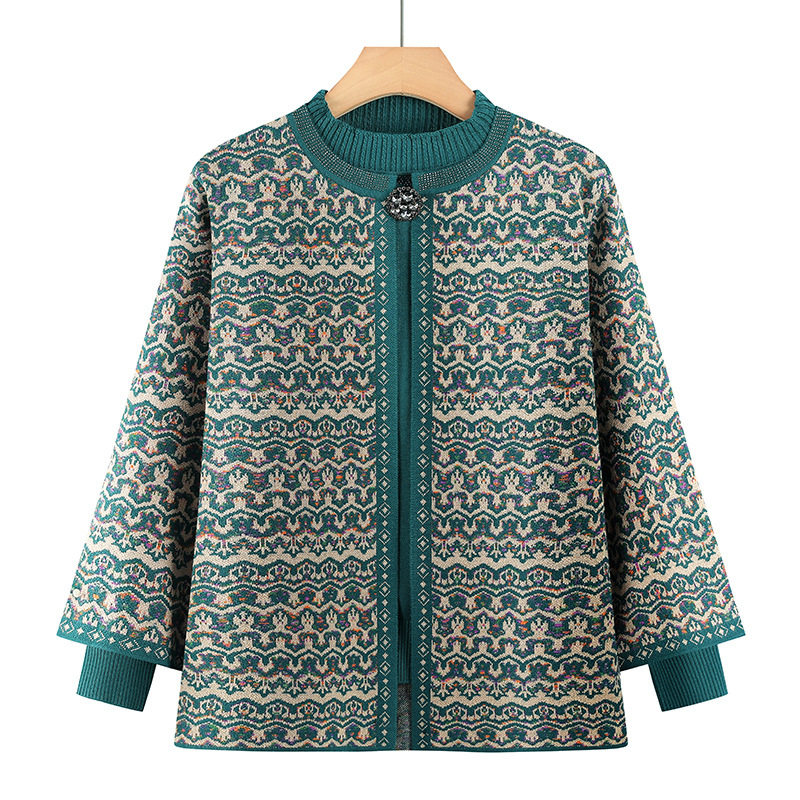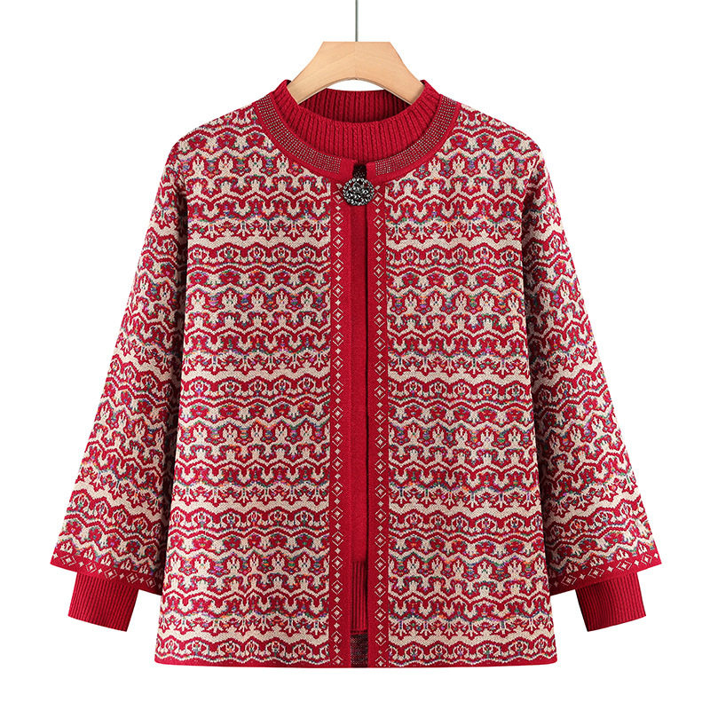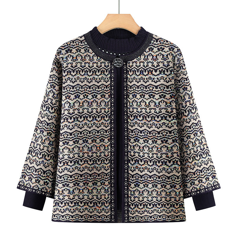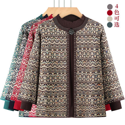 源头工厂中老年人女妈妈秋冬装针织开衫两件套装洋气上衣毛衣外套